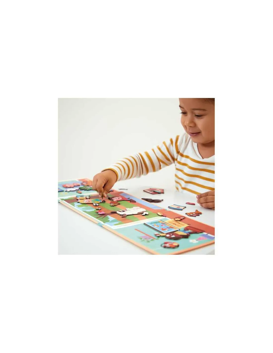 Un livre magnétique avec 30 magnets, un format de voyage idéal pour jouer dans les transports.
