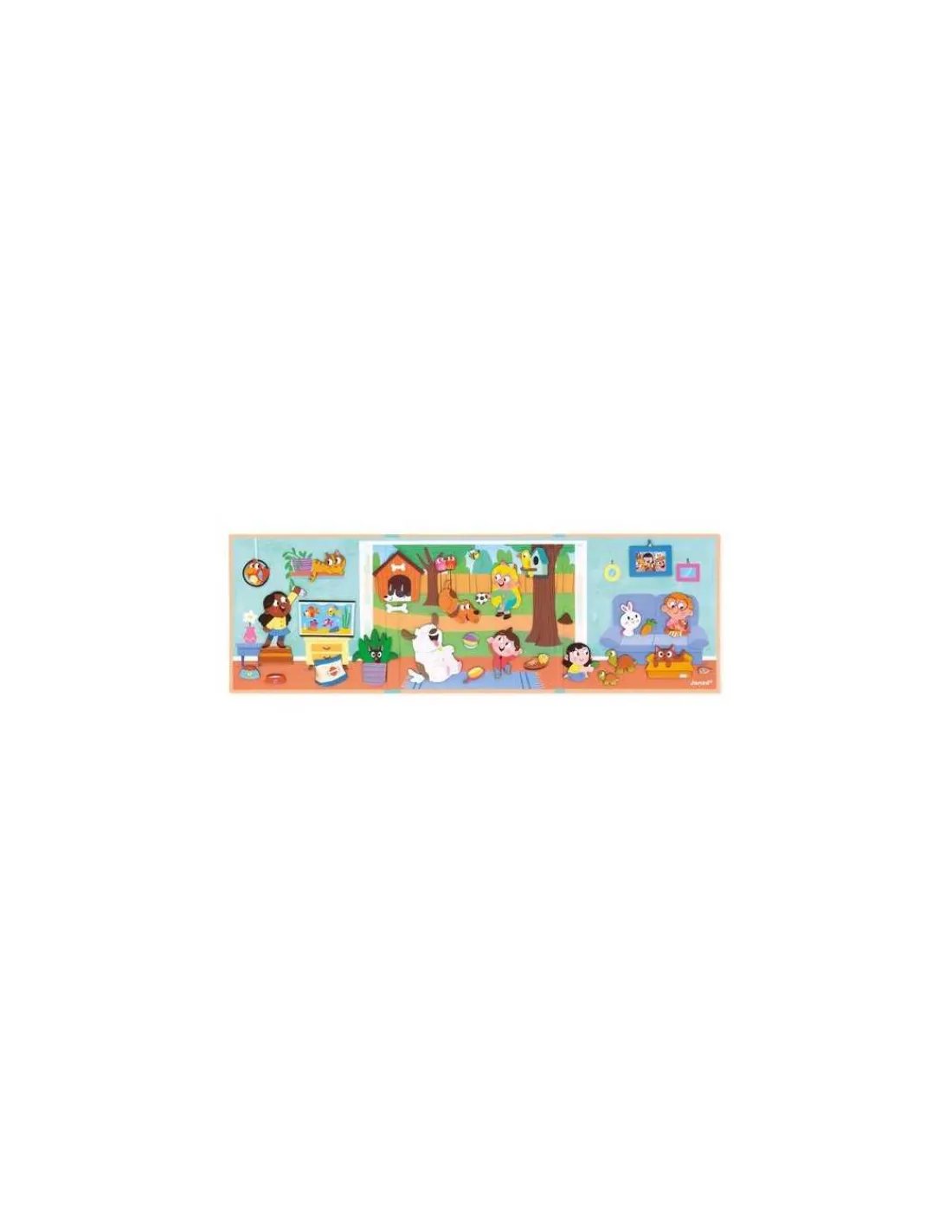 En ouvrant ce livre magnétique, votre enfant découvrira un joli décor, sur lequel il placera les pièces aimantées pour inventer de belles histoires avec nos compagnons du quotidien. Une scène représentant une maison et un jardin, sur laquelle votre enfant déposera de nombreux magnets pour jouer, nourrir et câliner d’adorables animaux.