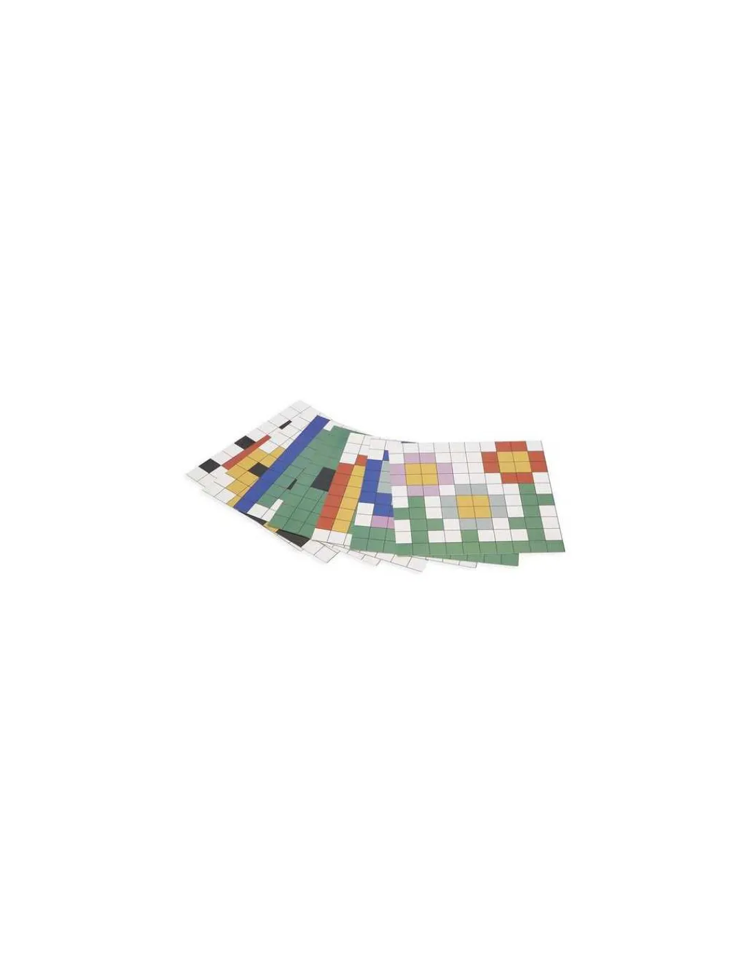 En mode Superposition, l’enfant place les jetons directement sur la carte modèle, facilitant ainsi la reconnaissance des formes et des couleurs. Avec la Reproduction, il reconstitue les motifs en plaçant les éléments librement sur le plateau, développant ainsi sa précision et sa motricité fine. Le mode Symétrie invite à dupliquer sur l’autre moitié du plateau ce qui est représenté sur la carte, une excellente façon d’appréhender l’équilibre visuel et l’organisation dans l’espace. Enfin, le mode Codage propose de reproduire l’illustration en s’aidant des chiffres et des couleurs indiqués, renforçant ainsi la compréhension des premières notions de codage et de logique.