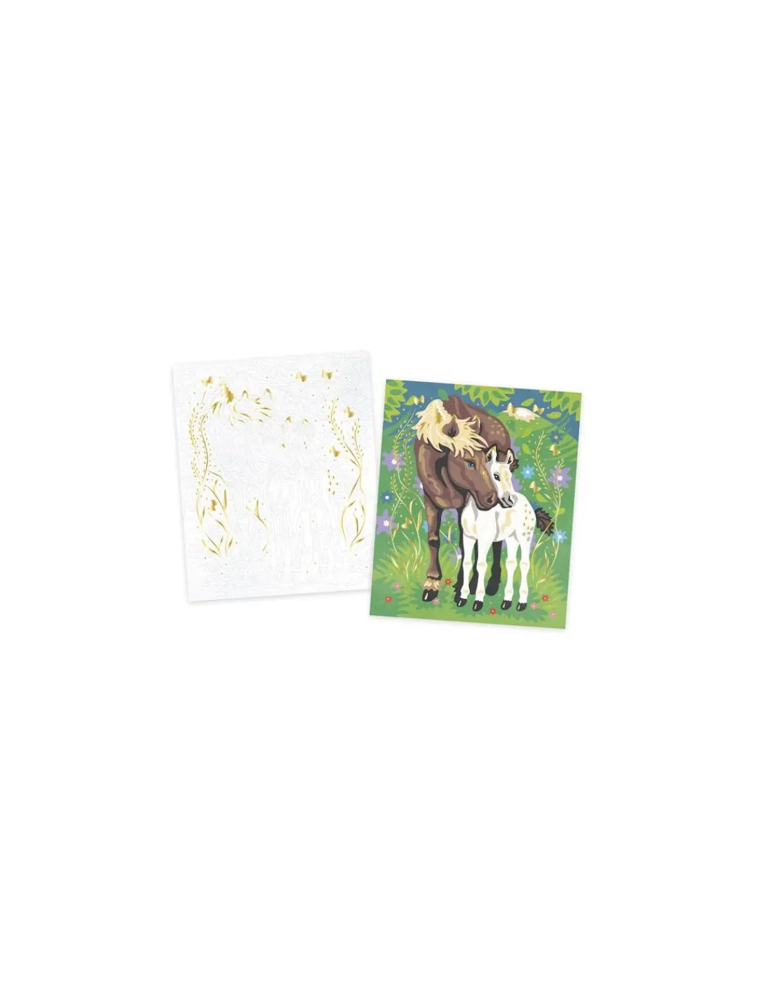 Découvrez le coffret peinture au numéro aquarelle Chevaux de la collection Les Ateliers du Calme de Janod, une activité créative pour les enfants dès 7 ans, permettant de réaliser deux tableaux colorés représentant des chevaux.