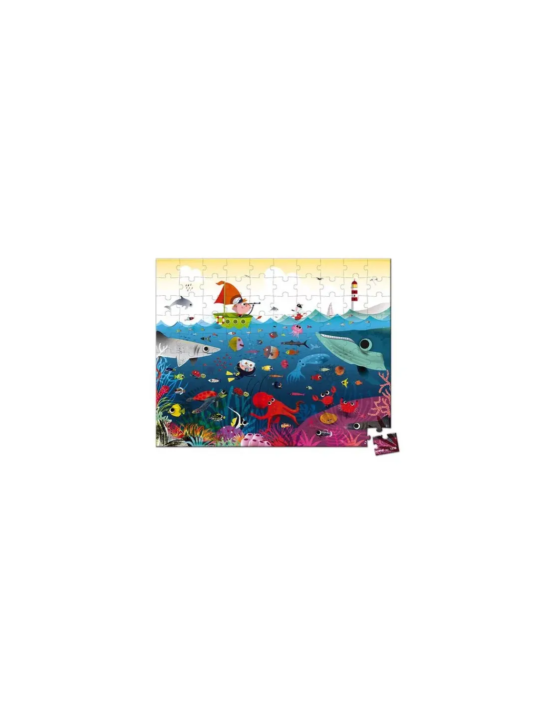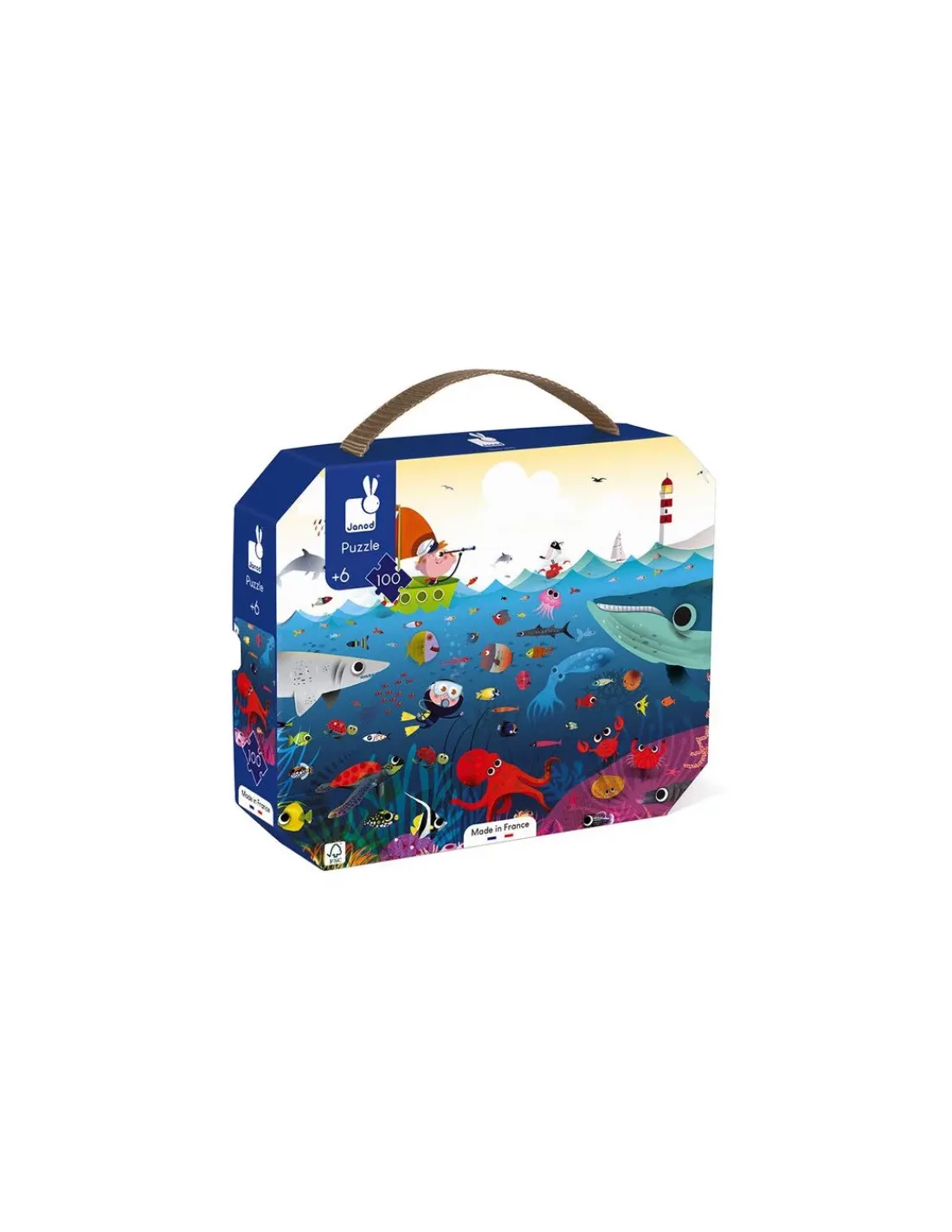 Découvrez le puzzle le monde sous marin de Janod, un magnifique puzzle de 100 pièces en carton pour les enfants sur l’océan à partir de 6 ans. Un puzzle fabriqué en France avec une superbe illustration colorée avec des animaux marins.