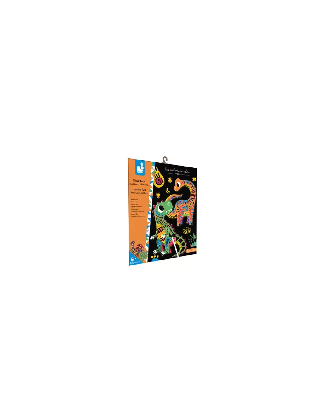 Découvrez le coffret créatif Scratch art Dinosaures silhouettés de la collection Les ateliers du calme de Janod, une activité créative pour les enfants à partir de 5 ans. Choisissez votre dinosaure et grattez la surface de la planche avec l’outil pour faire apparaître les couleurs. Une activité idéale pour occuper un ou plusieurs enfants.