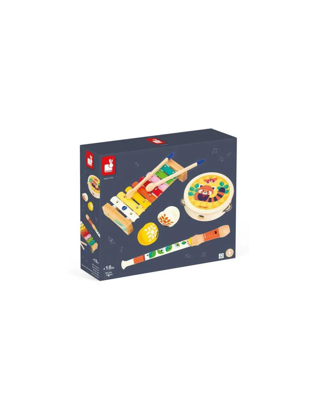 Découvrez le set musical de la collection Gioia de Janod, un coffret de 4 instruments de musique pour éveiller les enfants à la musique dès 18 mois.