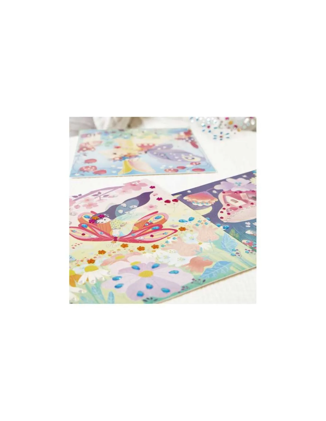Découvrez la pochette créative Strass de la collection Magic Fairies de Janod, une activité créative pour les enfants à partir de 5 ans, qui vont décorer des tableaux sur le thème des fées à l’aide de strass autocollants.