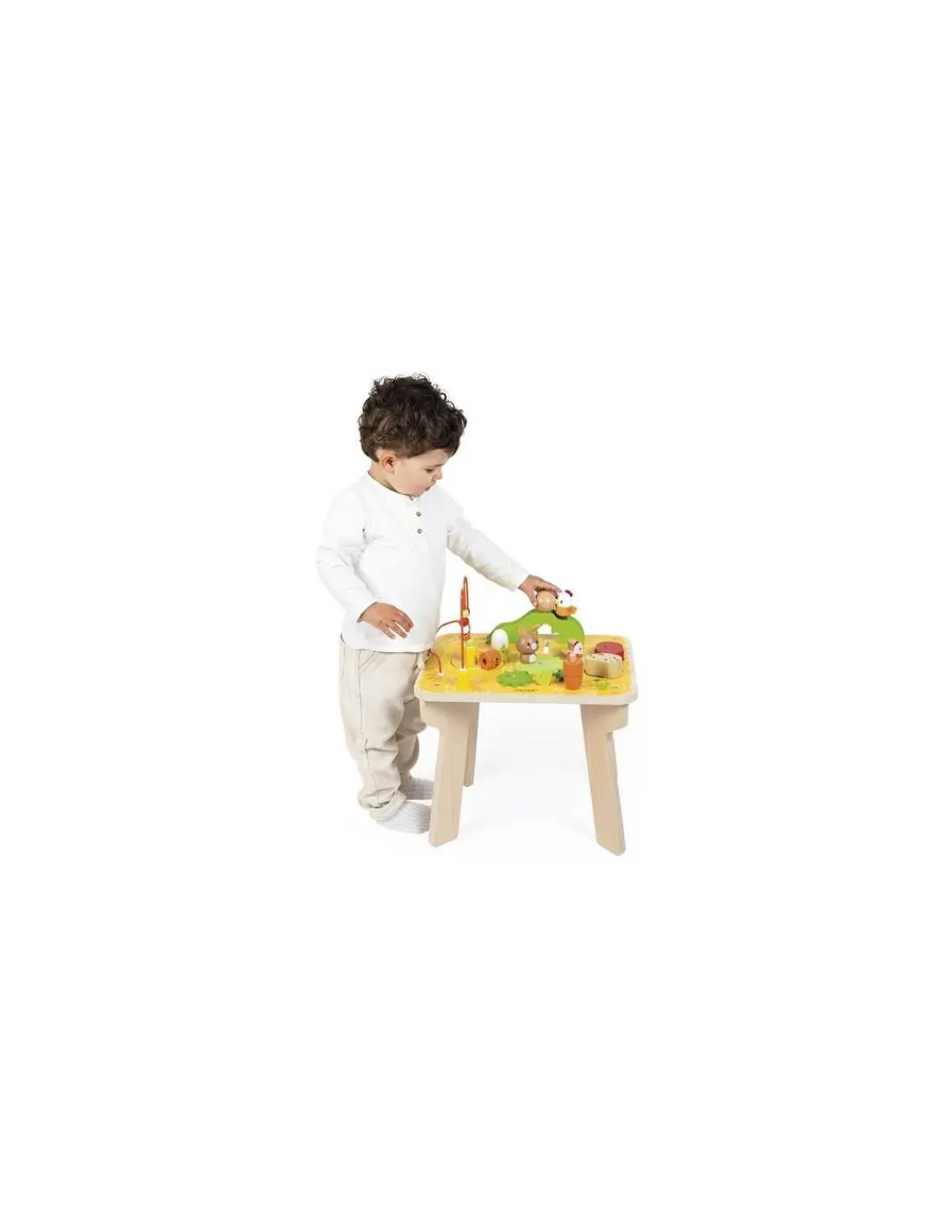 Découvrez la table d’activités de la collection Ferme de Janod, un jouet d’éveil en bois conçu pour stimuler les sens des enfants dès 1 an. Avec ses couleurs vives et attrayantes, ce jouet captivant éveillera la curiosité de votre bébé tout en favorisant son développement.