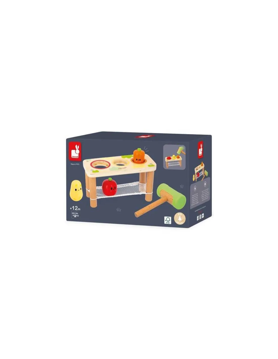Découvrez le jeu Tap Tap Légumes de la collection La Ferme de Janod, un jouet d’éveil en bois sur le thème du jardin pour les enfants dès 12 mois.