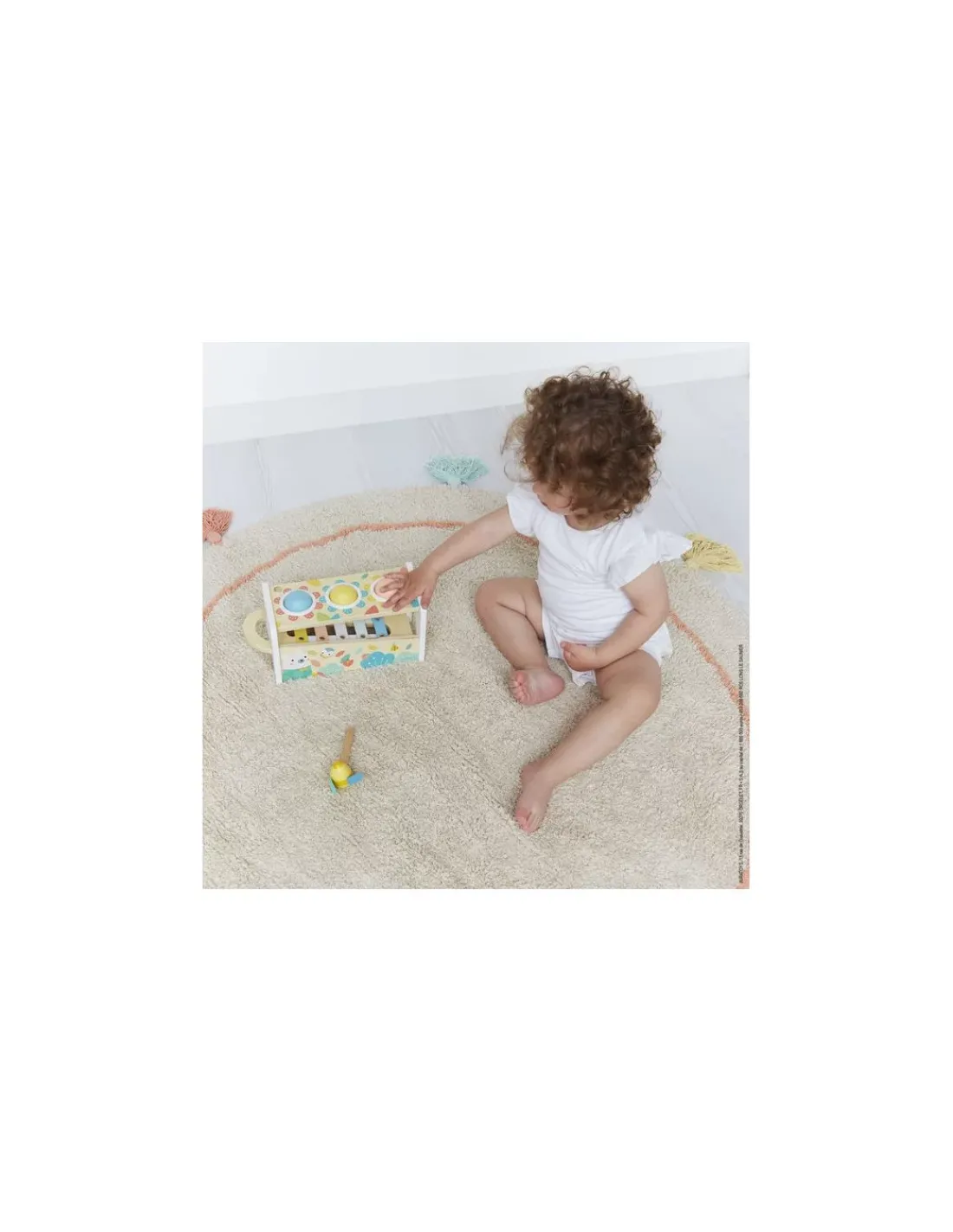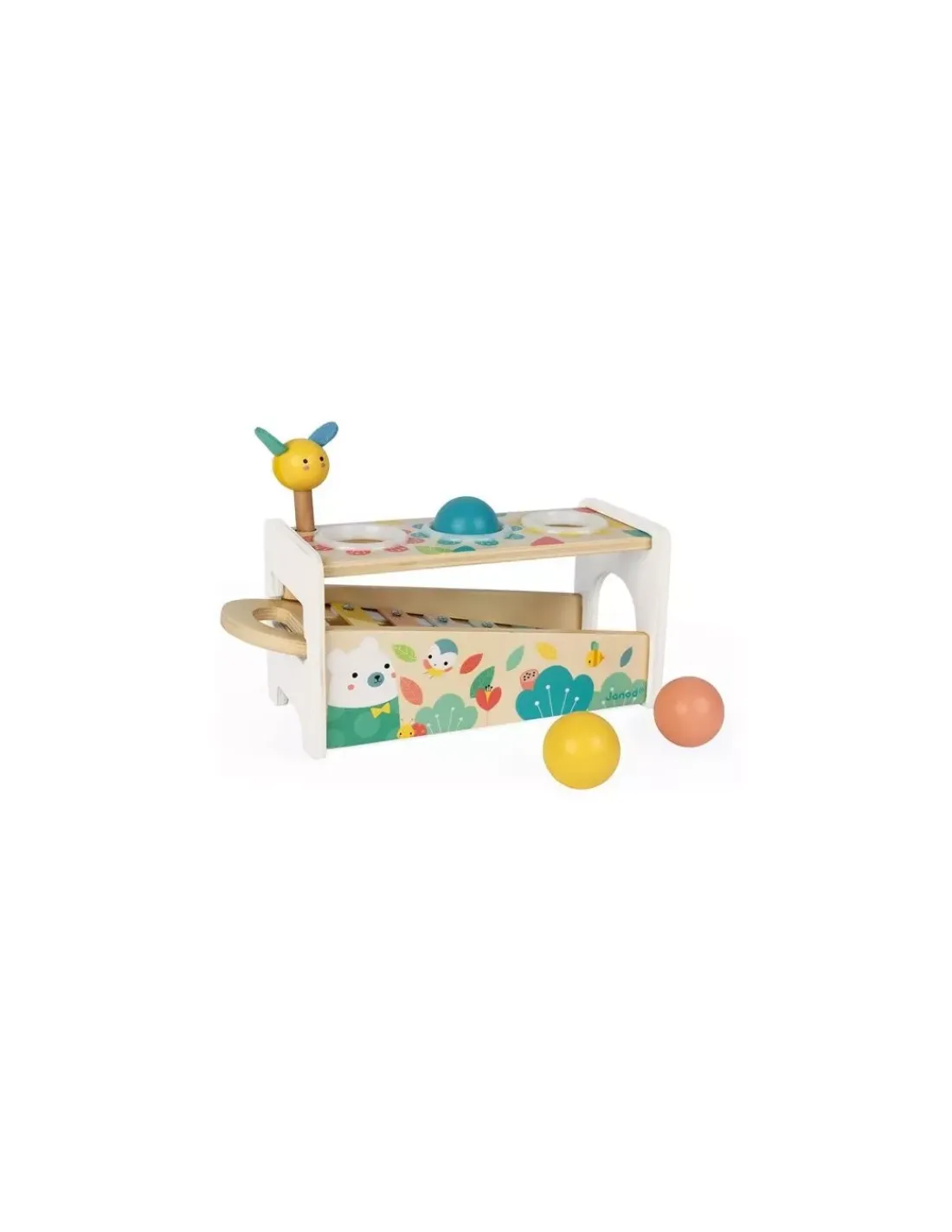 Le tap tap xylo pure de Janod est idéal pour développer la dextérité de bébé qui devra saisir les balles pour les placer dans les trous avant de frapper dessus avec le marteau.