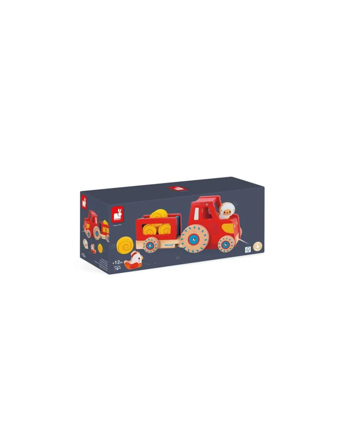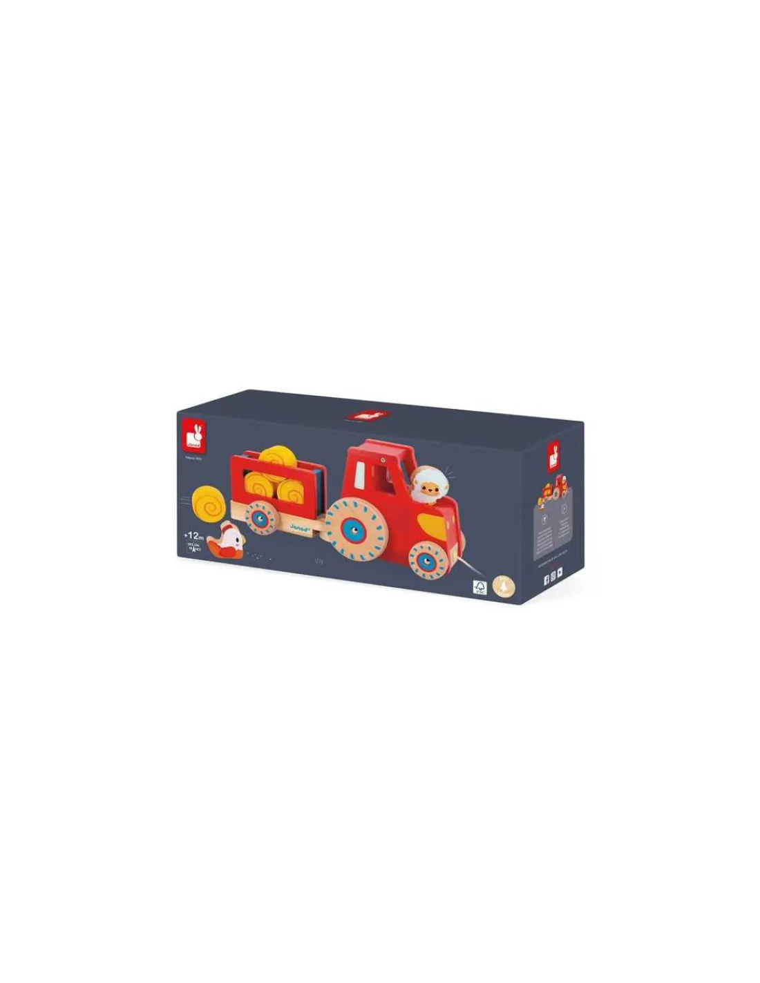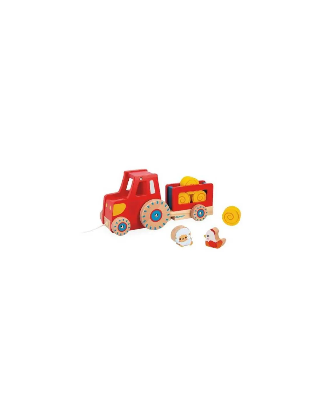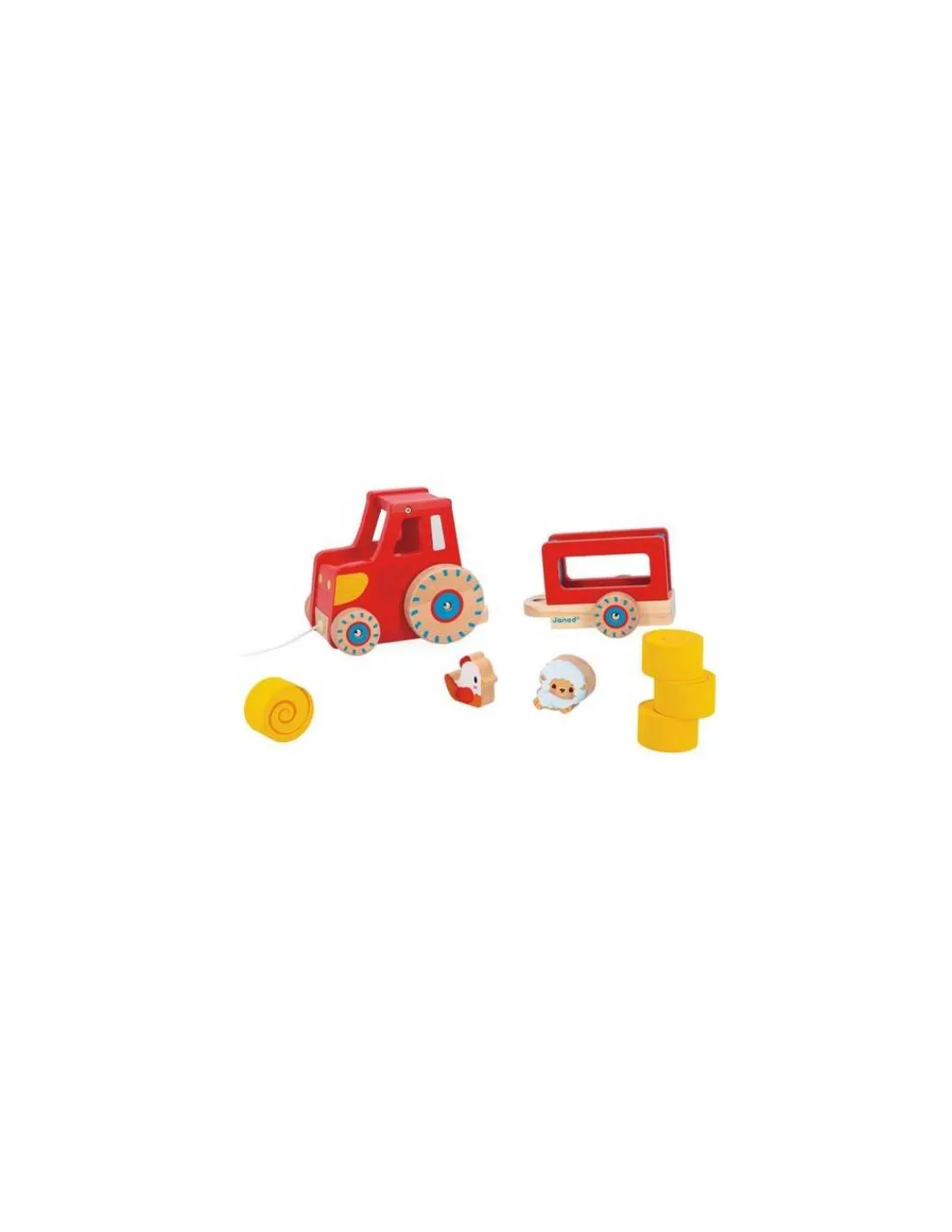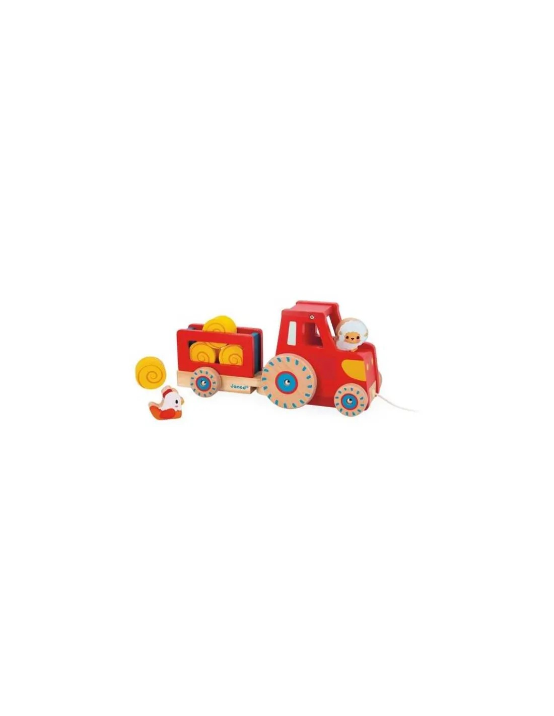 Découvrez le tracteur à tirer de la collection Ferme de Janod, un jouet en bois à offrir en cadeau aux enfants dès 12 mois. Un tracteur en bois livré avec des accessoires pour inventer de belles histoires sur le thème de la ferme.