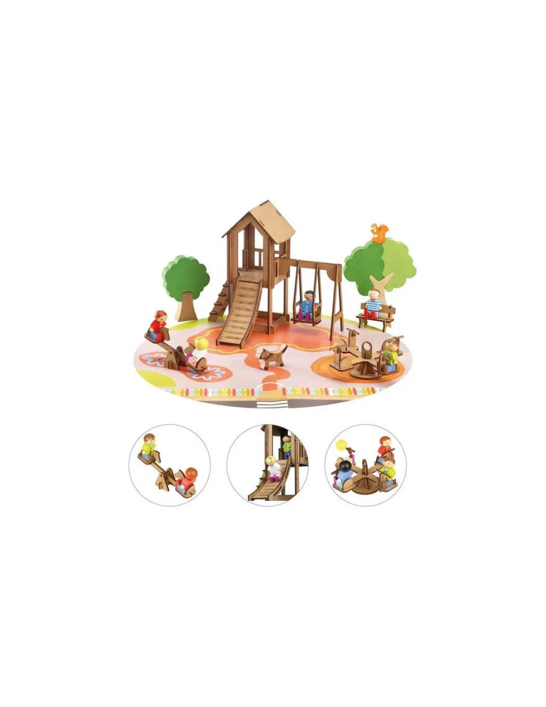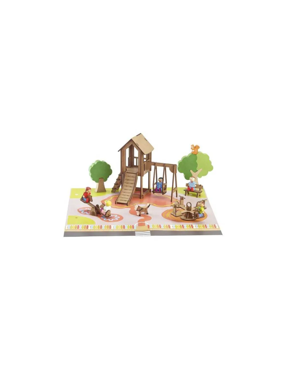 Direction le square avec ce coffret de jouets en bois. Arbre, banc et jeux d’extérieur, votre enfant pourra mettre en scène ses figurines et inventer de belles histoires grâce à ce charmant décor de jeu.
