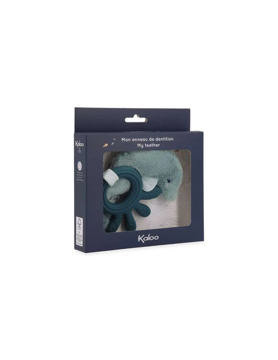 Découvrez l’anneau de dentition Dauphin de la collection Petit Calme de Kaloo, un cadeau de naissance composé d’un anneau de dentition en silicone et d’un doudou en forme de dauphin.
