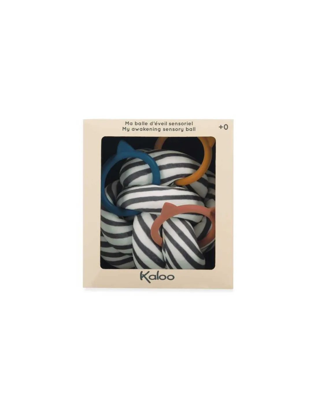 Découvrez Ma balle d’éveil sensoriel de la collection Stimuli de Kaloo, une balle en tissu conçue pour éveiller les sens de bébé tout en l’amusant.