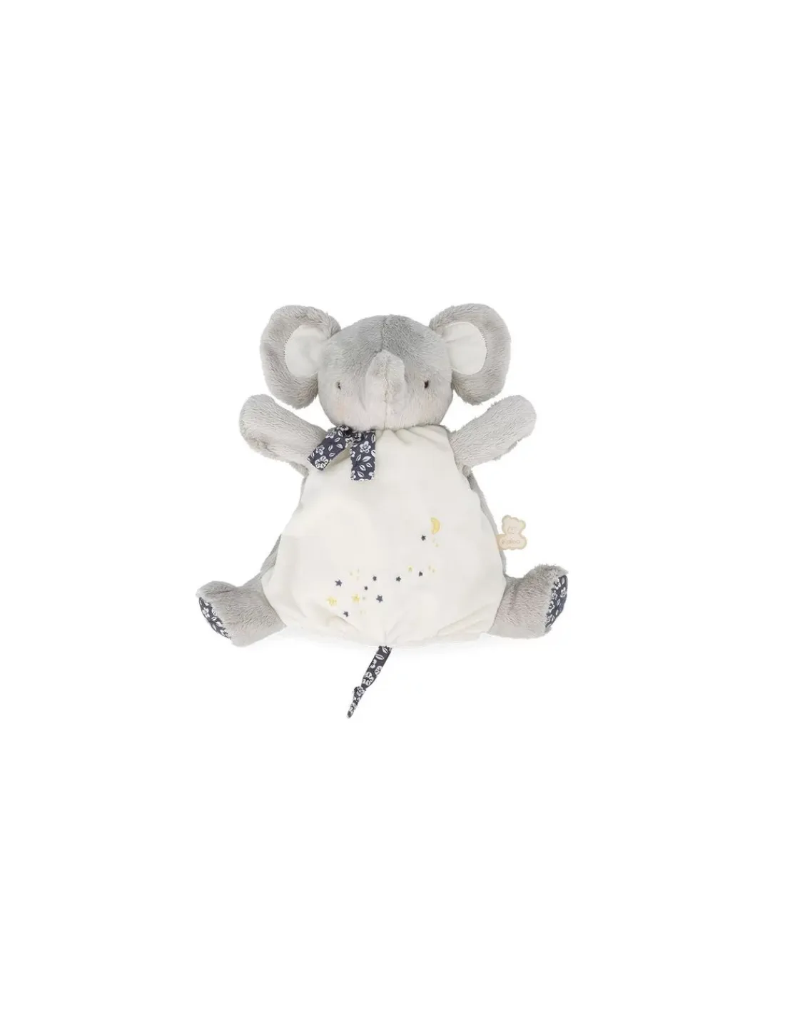 Le doudou marionnette éléphant est la représentation que Kaloo avoulu donner à la comptine « Brille, Brille, Petite Etoile ». Les broderies racontant l’histoire de la comptine sont cousues sur le corps tout doux de l’éléphant. Animez la marionnette éléphant pour partager un moment avec bébé en jouant au jeu du « coucou-caché ».