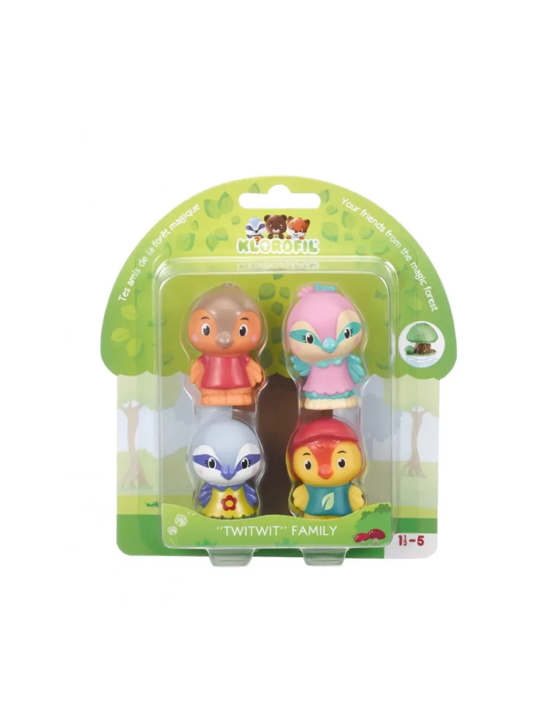 Découvrez la famille de 4 personnages Twitwit de Klorofil, une adorable famille oiseau composée d’un papa, d’une maman et deux enfants pour les enfants à partir de 18 mois. Une famille idéale pour inventer des histoires magiques dans les différents univers de ces petits êtres bienveillants avec Jim, Lili, Nino et Patty.