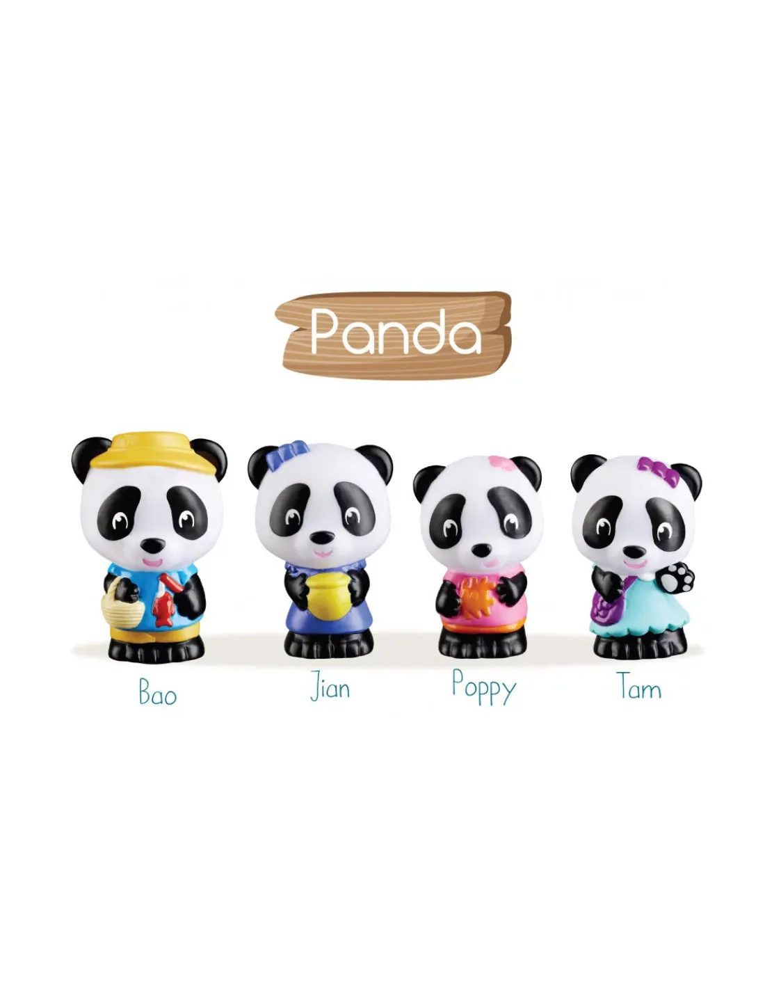 Découvrez la famille de 4 personnages Panda de Klorofil, une adorable famille panda composée d’un papa, d’une maman et deux enfants pour les enfants à partir de 18 mois. Une famille idéale pour inventer des histoires magiques dans les différents univers de ces petits êtres bienveillants avec Bao, Jian, Tam et Poppy.