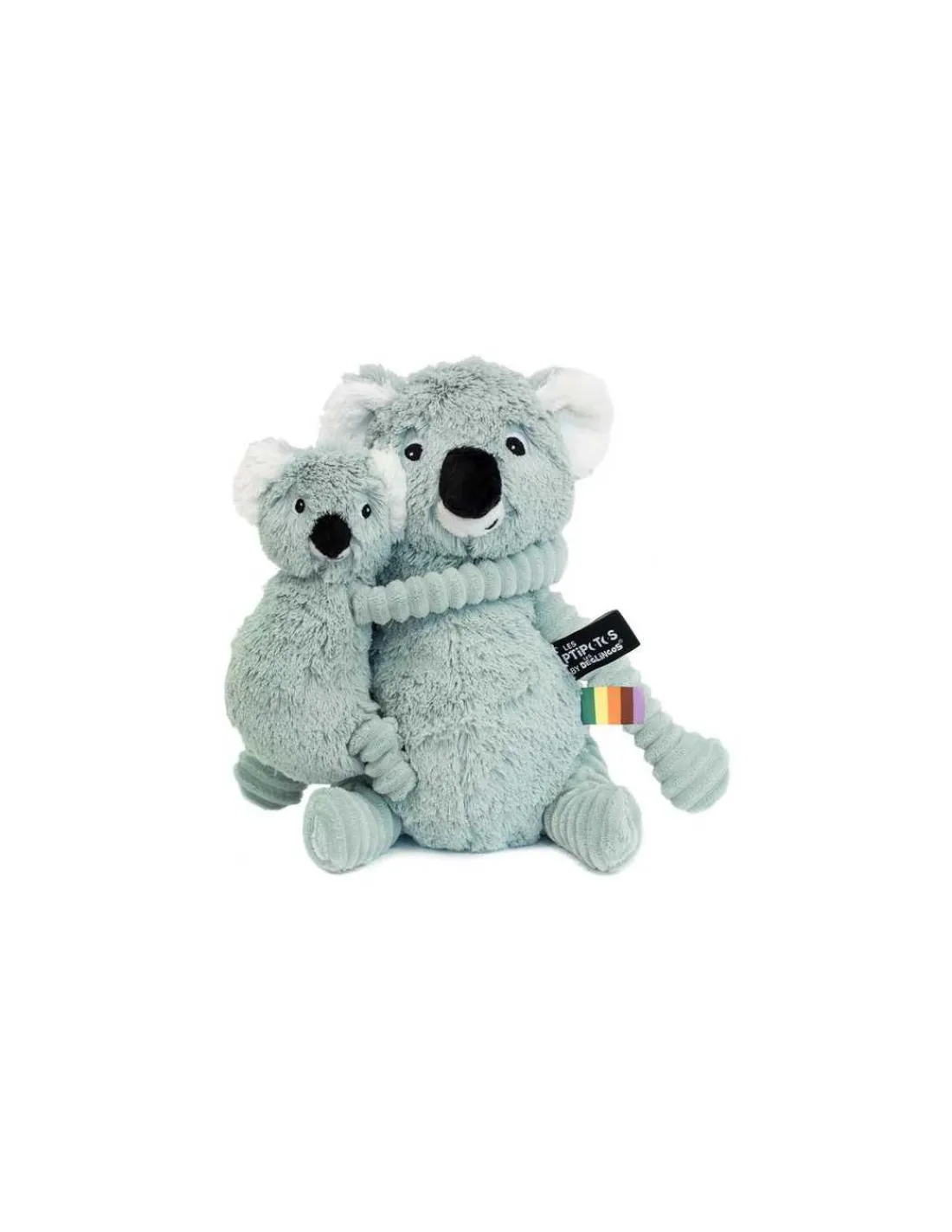 Découvrez la peluche Trankilou le koala maman et bébé vert menthe de la collection Les Ptipotos by Déglingos, un tendre duo qui accompagnera votre enfant dès la naissance pour des moments de douceur et de complicité. Toujours lové contre sa maman, le bébé de Trankilou s’accroche à son cou, mais peut aussi s’en détacher pour partager encore plus de câlins et d’aventures.