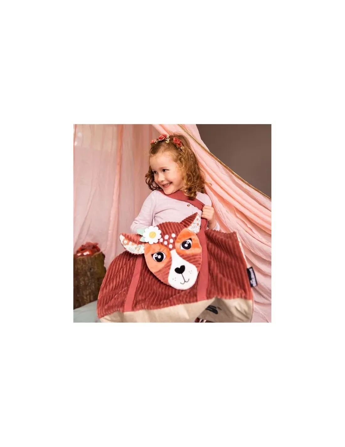 Avec sa grande ouverture et sa pochette intérieure, ce sac de voyage sera adopté par toutes les filles ou les garçons, qui vont adorer sa couleur terracotta et son ouverture avec la tête de ma gentille biche Mélimélos.