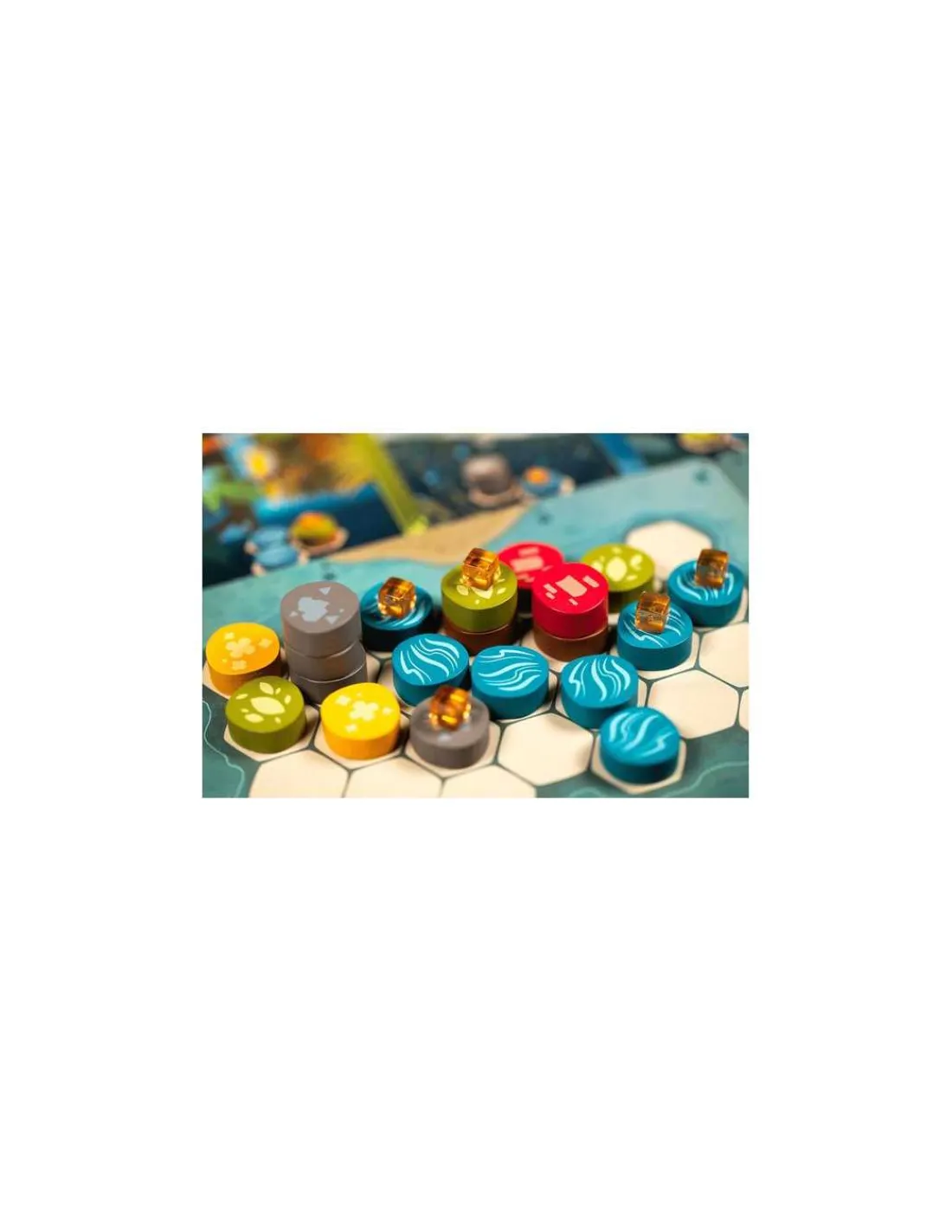 Construisez un paysage sur votre plateau en posant des séries de 3 pions et faites apparaitre des forêts, des montagnes, des champs et des villes. Sélectionnez ensuite les bonnes cartes « Animal » et reproduisez leur habitats pour qu’ils viennent peupler votre région. Qui obtiendra la plus belle faune ?