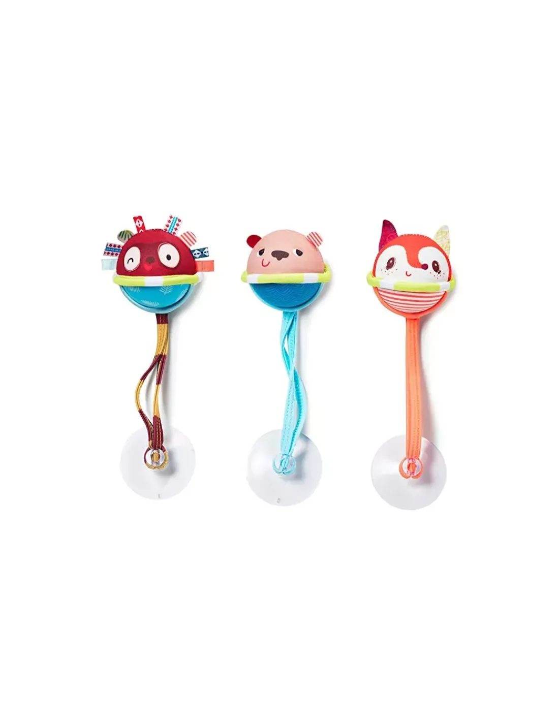 Les 3 balles de bain en néoprène se fixent avec des ventouses sur la paroi du bain et dansent sur l’eau, sous les yeux de bébé.