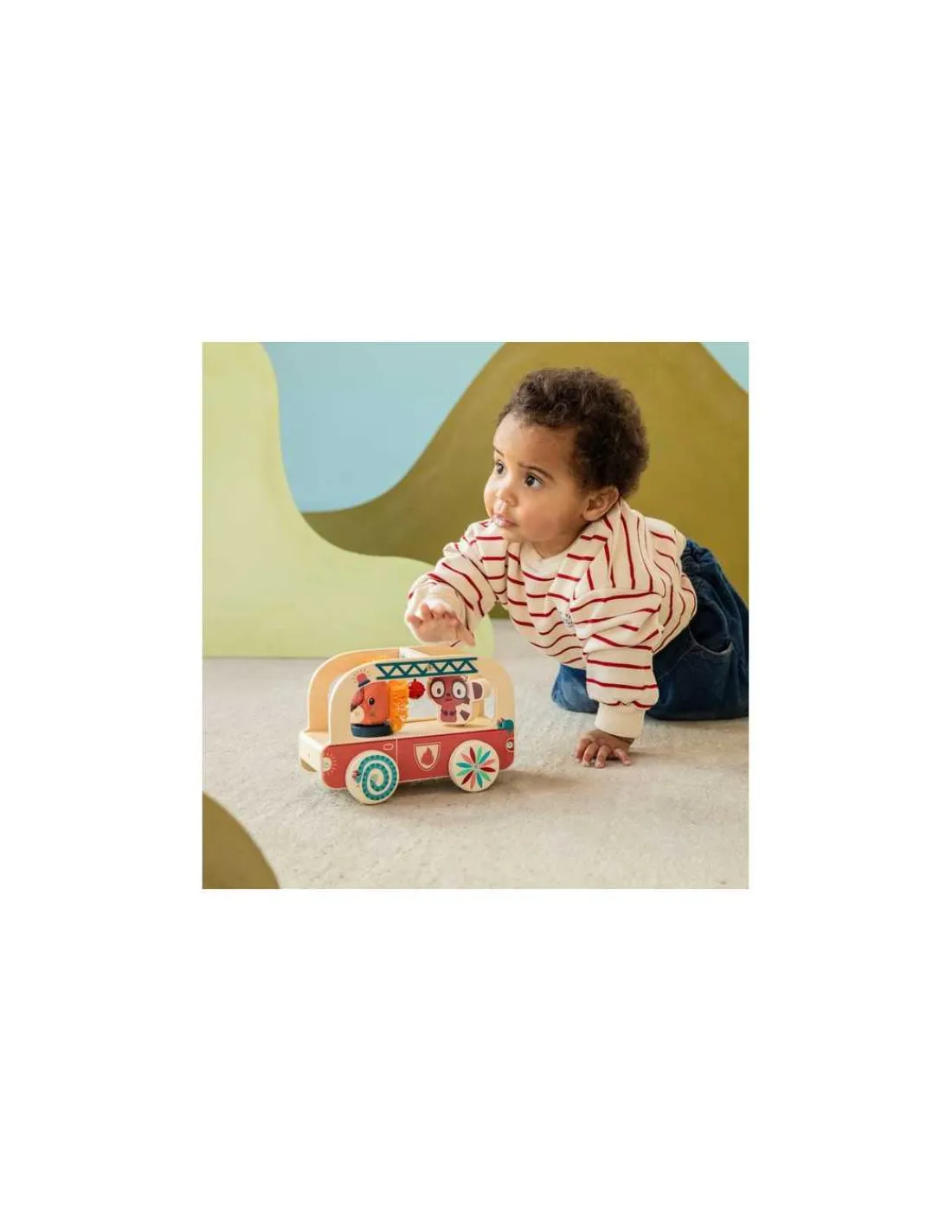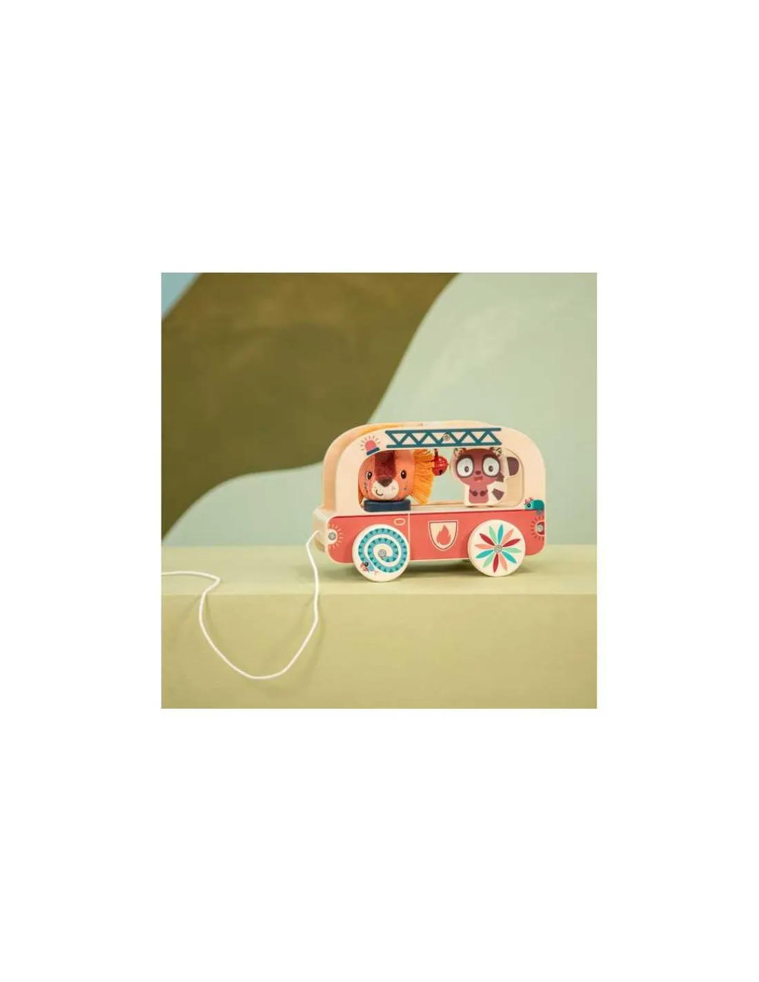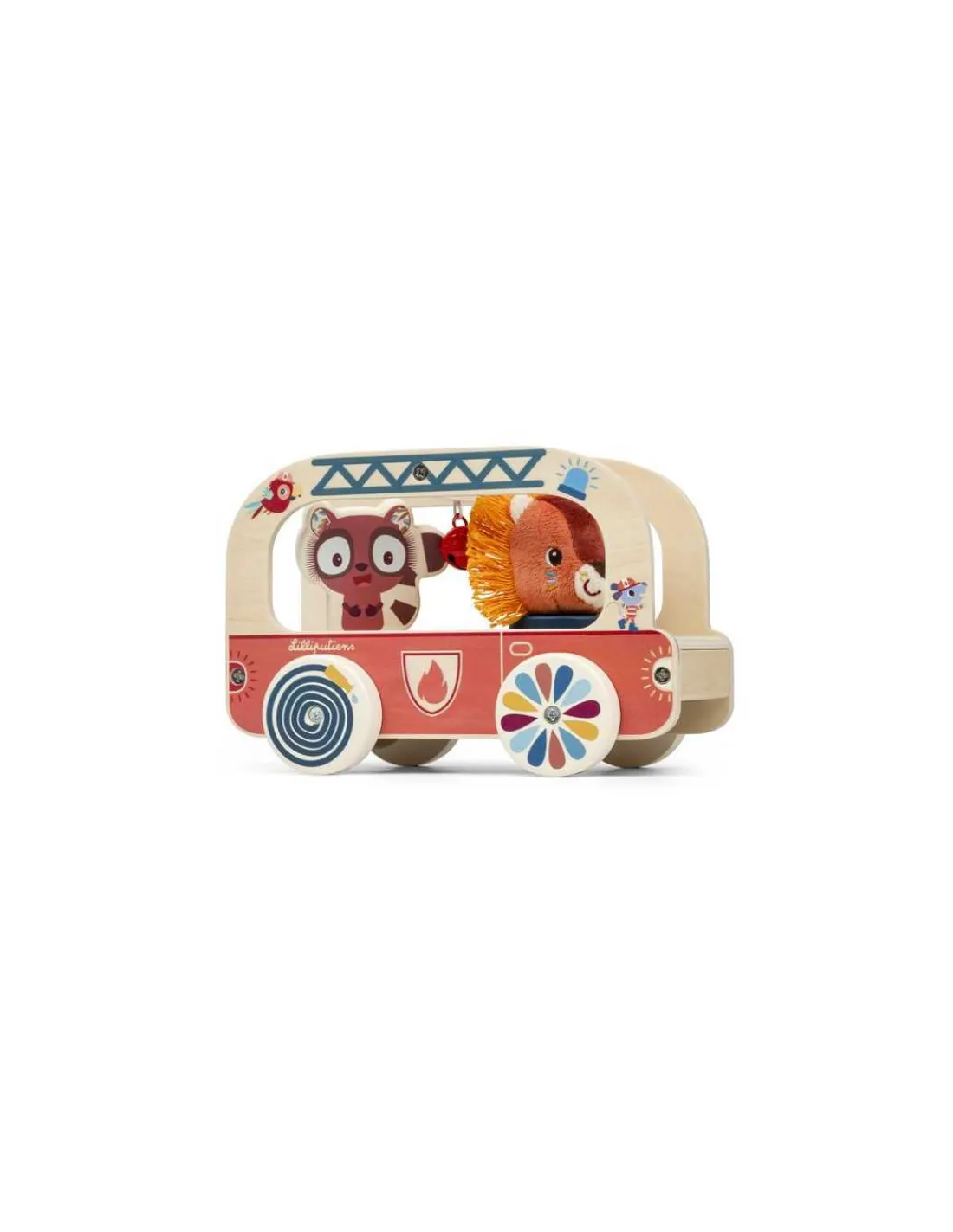 Découvrez Jack Camion de pompier de Lilliputiens, un jouet à tirer en bois et tissu conçu pour les enfants dès 10 mois.