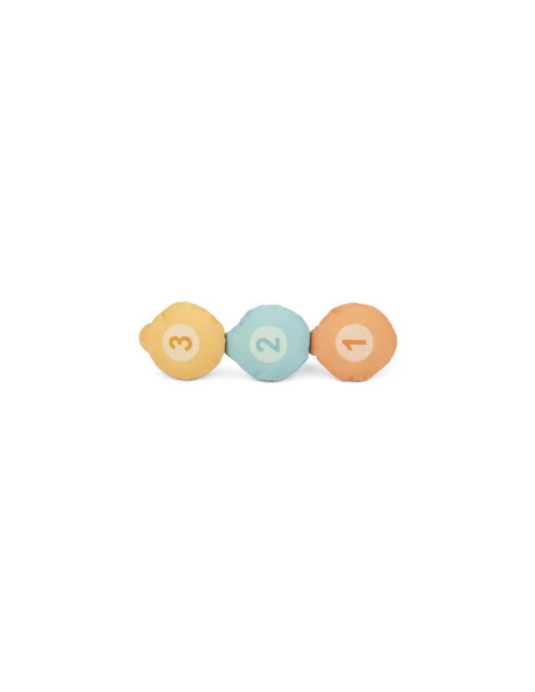 En tissu, la grande maman canard flotte sur l’eau et peut porter ses canetons sur son dos en forme de filet ou les laisser nager librement. Grâce à un système d’aimants, les canetons s’associent entre eux avec un jeu de couleurs, transformant le bain en un jeu d’apprentissage ludique. Soulevez un caneton et découvrez un chiffre caché (entre 1 et 3), parfait pour accompagner votre enfant dans l’apprentissage des couleurs et des nombres.