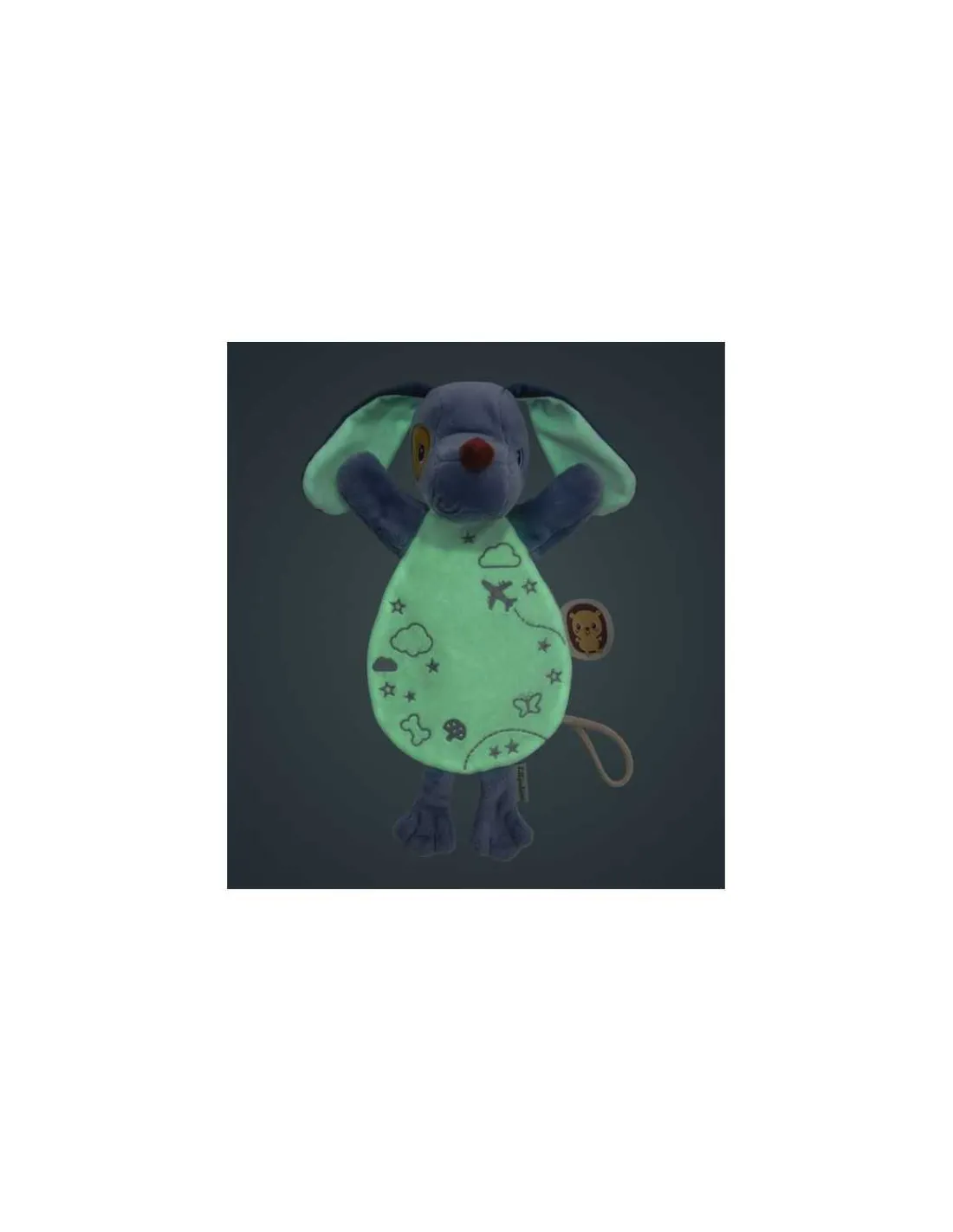 Découvrez le doudou phosphorescent Jules le chien de Lilliputiens, un doudou qui brille dans la nuit et qui sert aussi de marionnette à offrir en cadeau de naissance.
