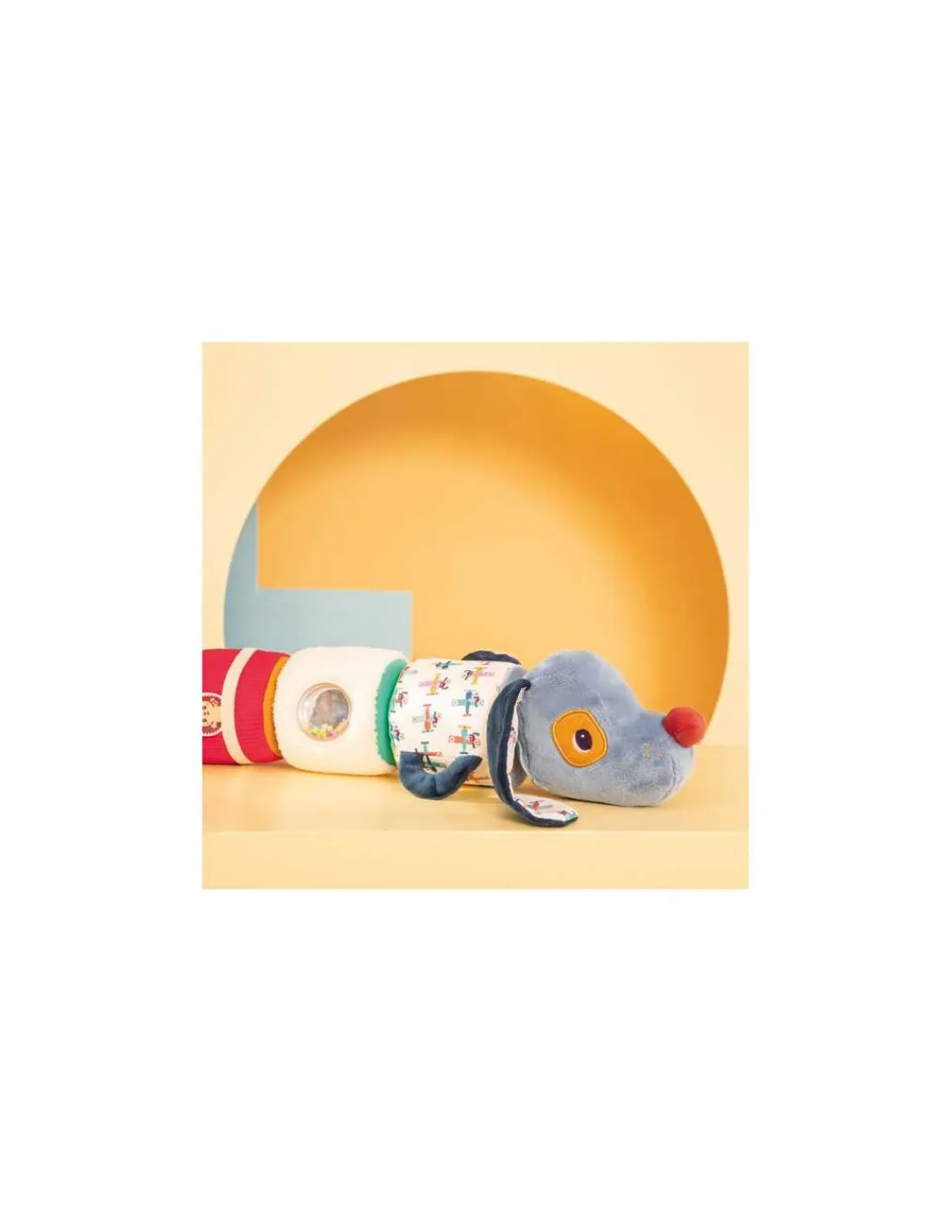 Découvrez le jouet d’éveil Jules rouleau sonore de Lilliputiens, un jouet 4 en 1 pour éveiller les sens de bébé dès 6 mois.