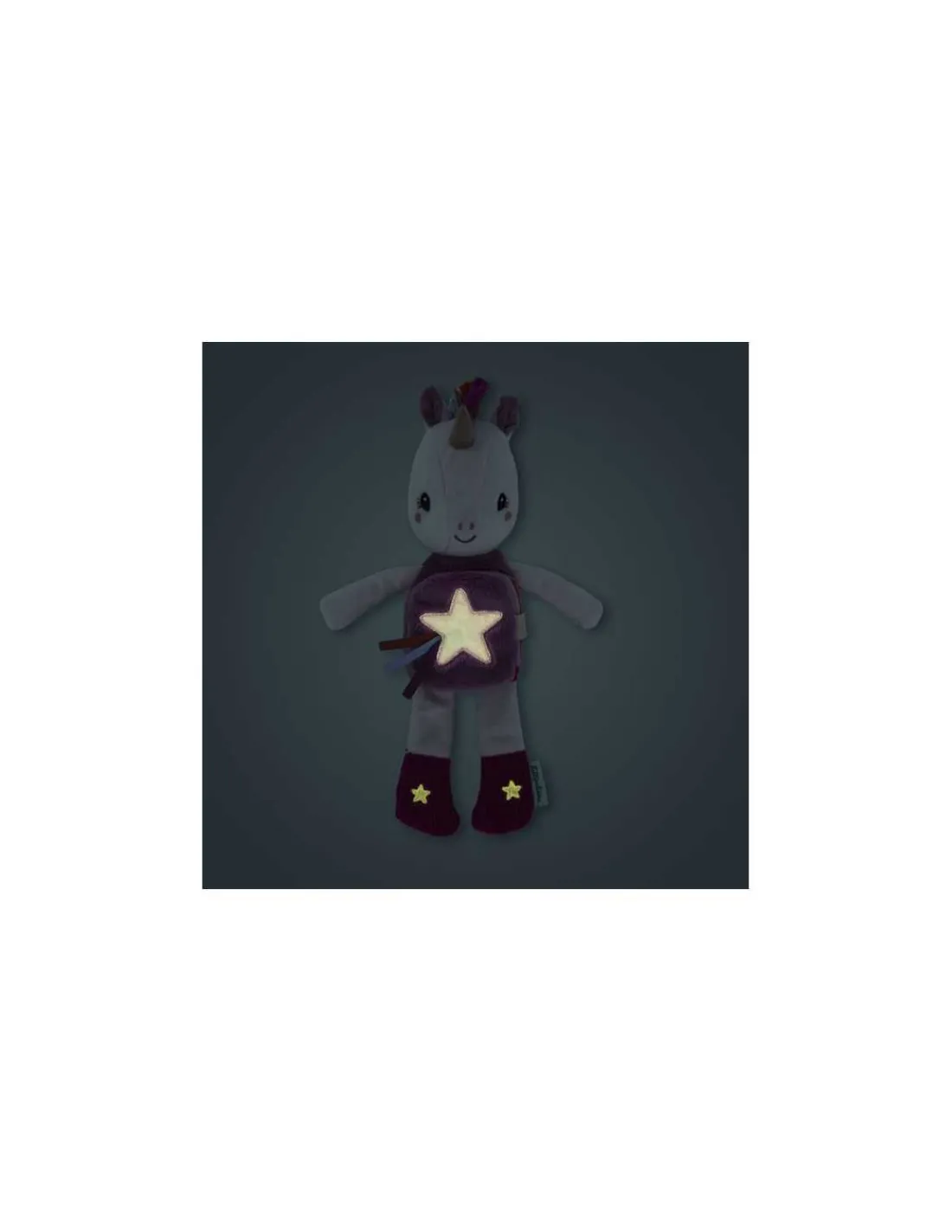 Léna la licorne toute douce cache un imagier sur son ventre qui raconte le rituel du coucher. Quand la lumière s’éteint, des étoiles brillent doucement pour rassurer et veiller sur les jolis rêves.