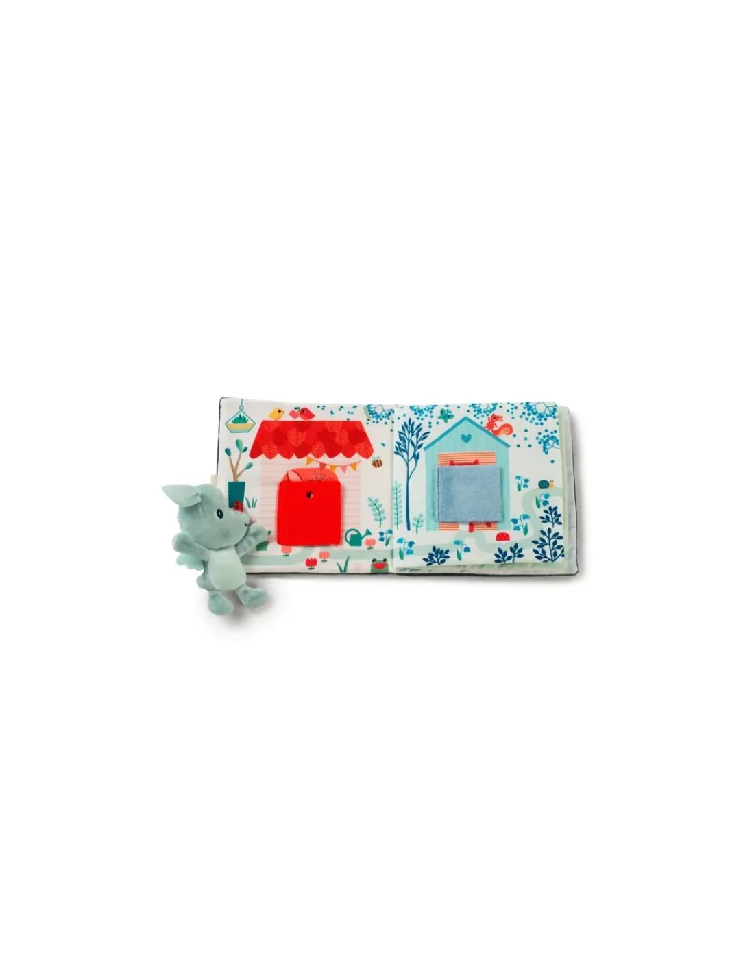 Découvrez le livre Joe toc toc de Lilliputiens, un joli livre en tissu plein de découvertes avec Joe le dragon en marionnette de doigt, que vous pourrez balader de page en page.