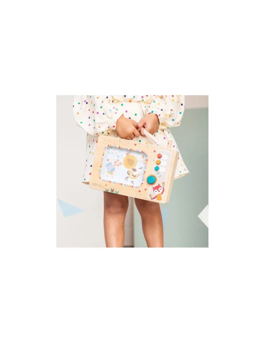 Un petit tour de bouton sur la boîte à musique et l’orchestre s’ébranle et entonne un air joyeux. Grâce à la poignée, votre enfant pourra emporter cette boîte à musique magnifiquement illustrée partout avec lui. Une jolie musique qui active une image de musiciens dansant sur l’écran. Une belle radio animée à offrir en cadeau de naissance ou d’anniversaire à une fille ou à un garçon.