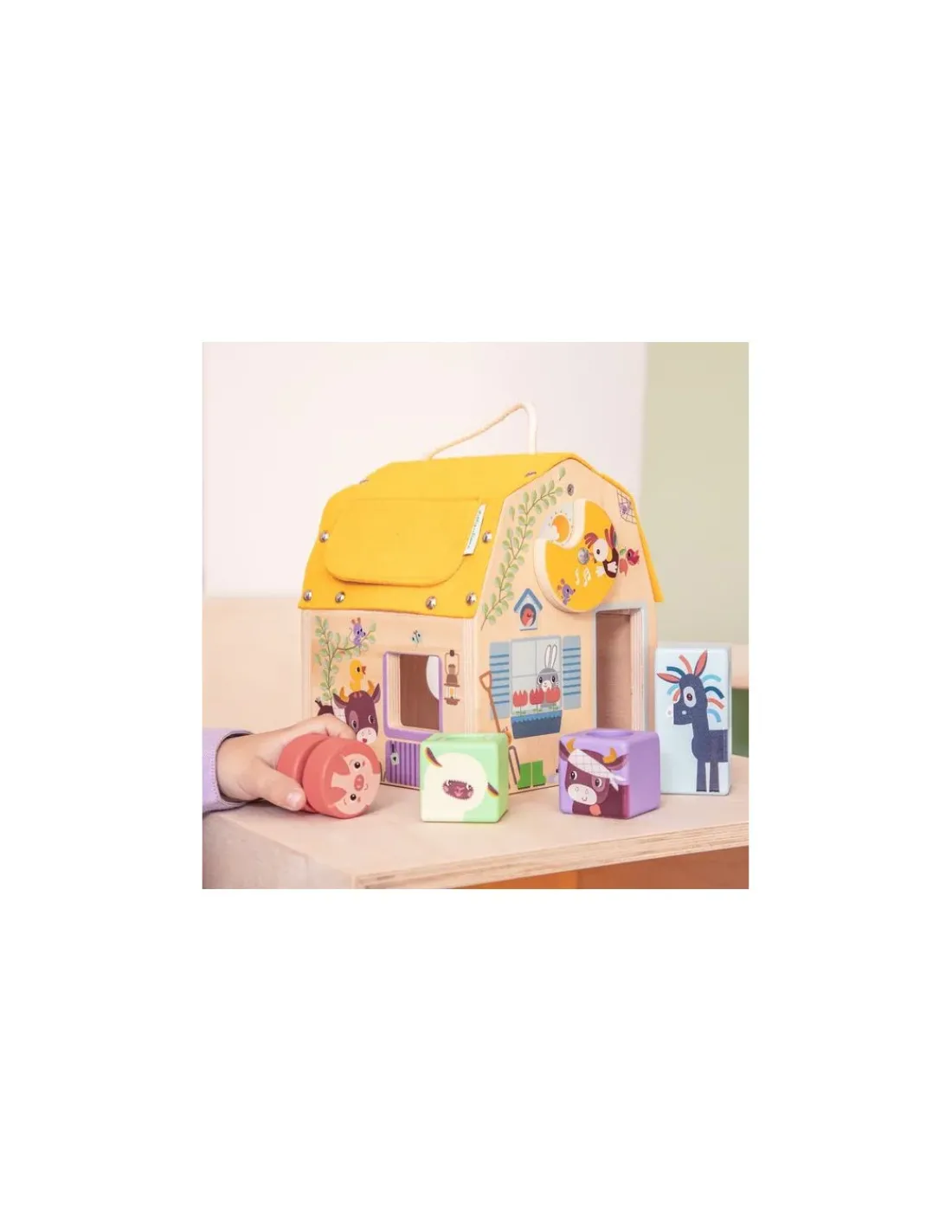 Découvrez la maison sonore à formes de Lilliputiens, un superbe jouet d’éveil en bois et en feutrine pour les enfants dès 12 mois, avec lequel ils vont pouvoir développer leur motricité fine, mais également inventer de belles histoires sur le thème de la ferme.