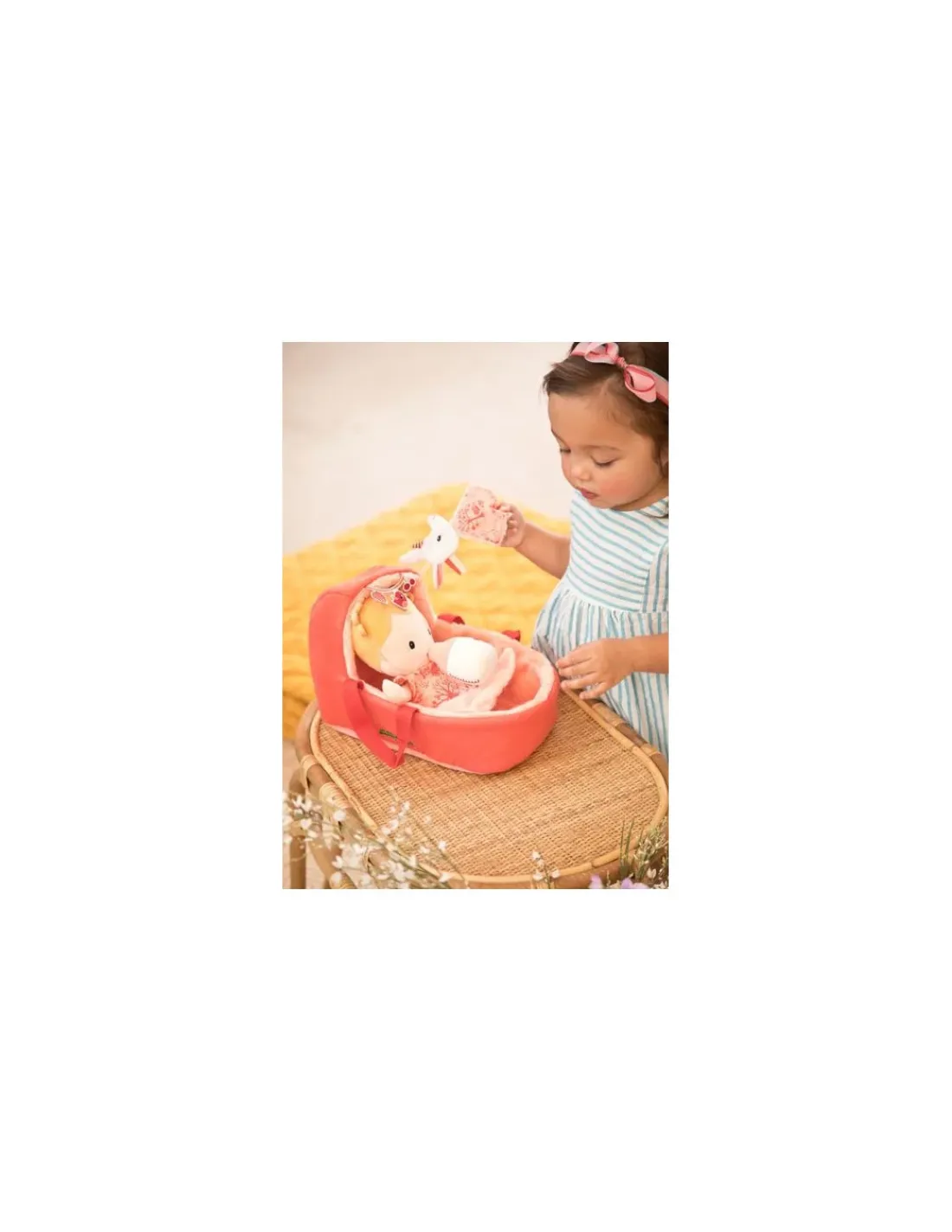 Découvrez la poupée bébé Léna de Lilliputiens, une adorable poupée de chiffon lovée dans son couffin sous sa couverture. Un poupon que votre enfant va s’amuser à promener et à câliner.