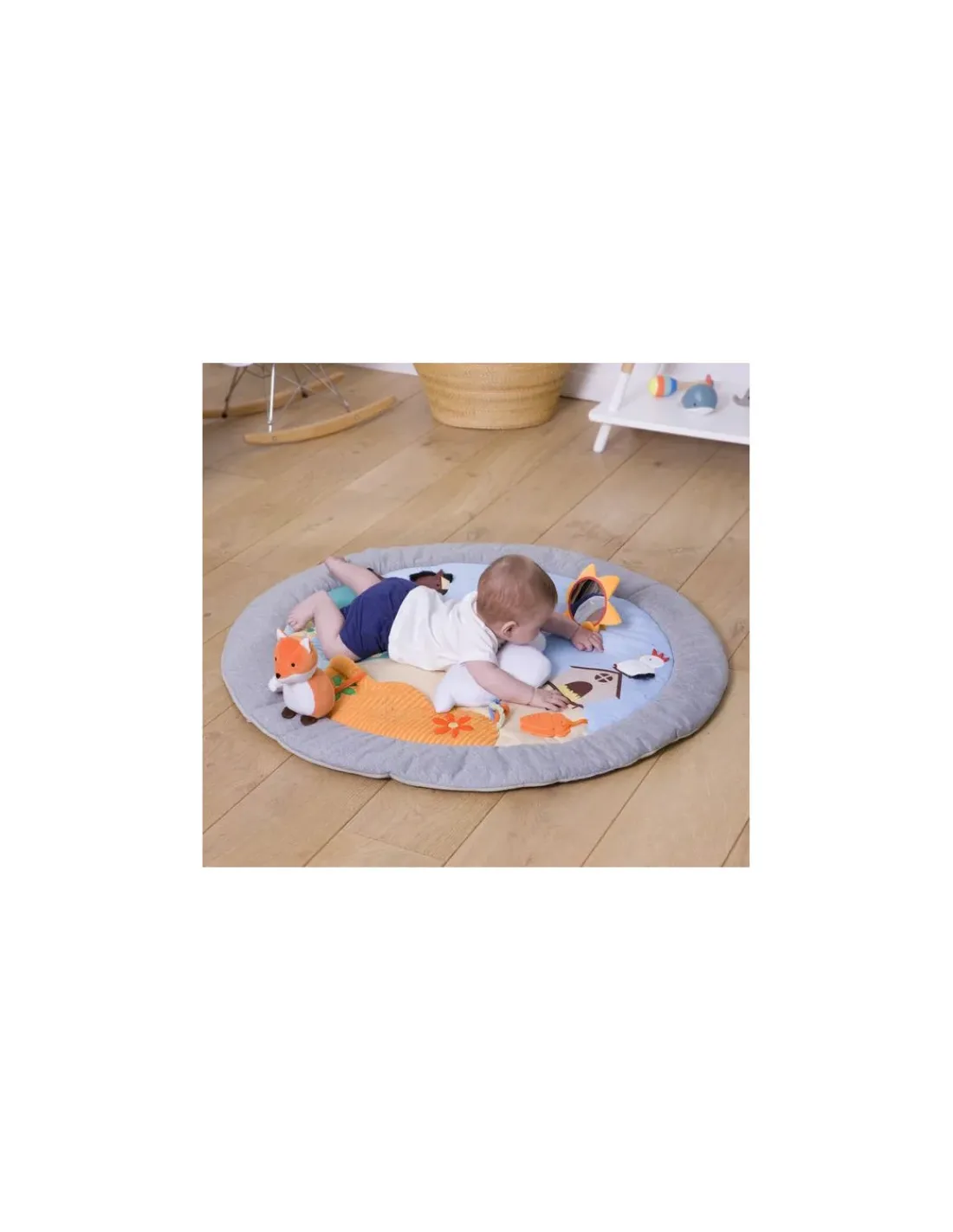 Vous apprécierez les jeux de matières à toucher, ses jolies couleurs contrastées, ses animaux cachés, son miroir soleil… Bébé passera des heures à s’amuser sur ce tapis tout en développant sa motricité et sa motricité fine. Il est moelleux et tout doux et son coussin amovible en forme de nuage aide bébé à maintenir sa tête droite et à renforcer les muscles du haut de son corps lorsqu’il est à plat ventre.