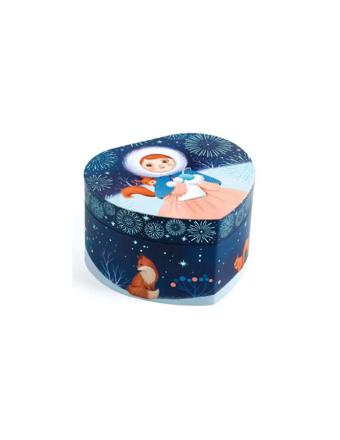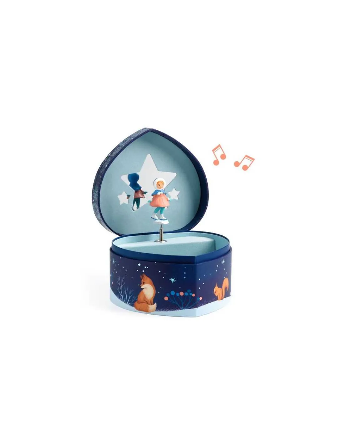 Découvrez la boite à bijoux Patineuse de Djeco, une boite à musique et un coffre à bijoux. Une boîte à musique en forme de coeur joliment illustrée pour ranger ses bijoux et secrets.