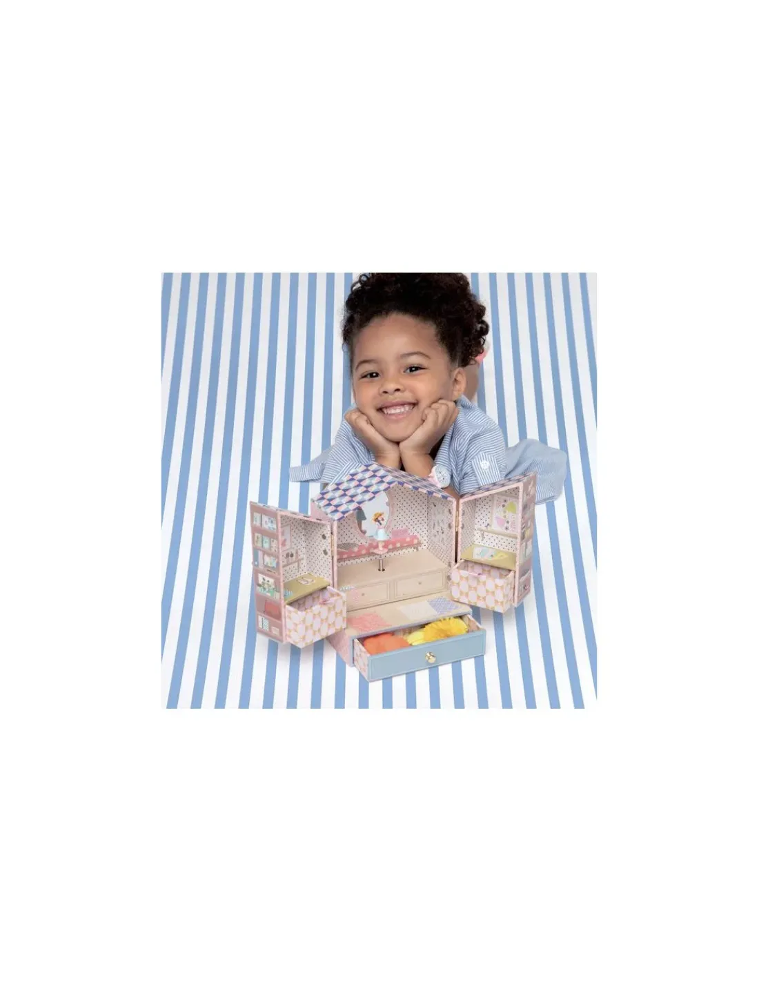 Découvrez la boite à bijoux Tinou Shop de Djeco, une boite à musique et une armoire à bijoux à offrir en cadeau. Une boîte à musique joliment illustrée avec trois tiroirs pour ranger ses bijoux et secrets.