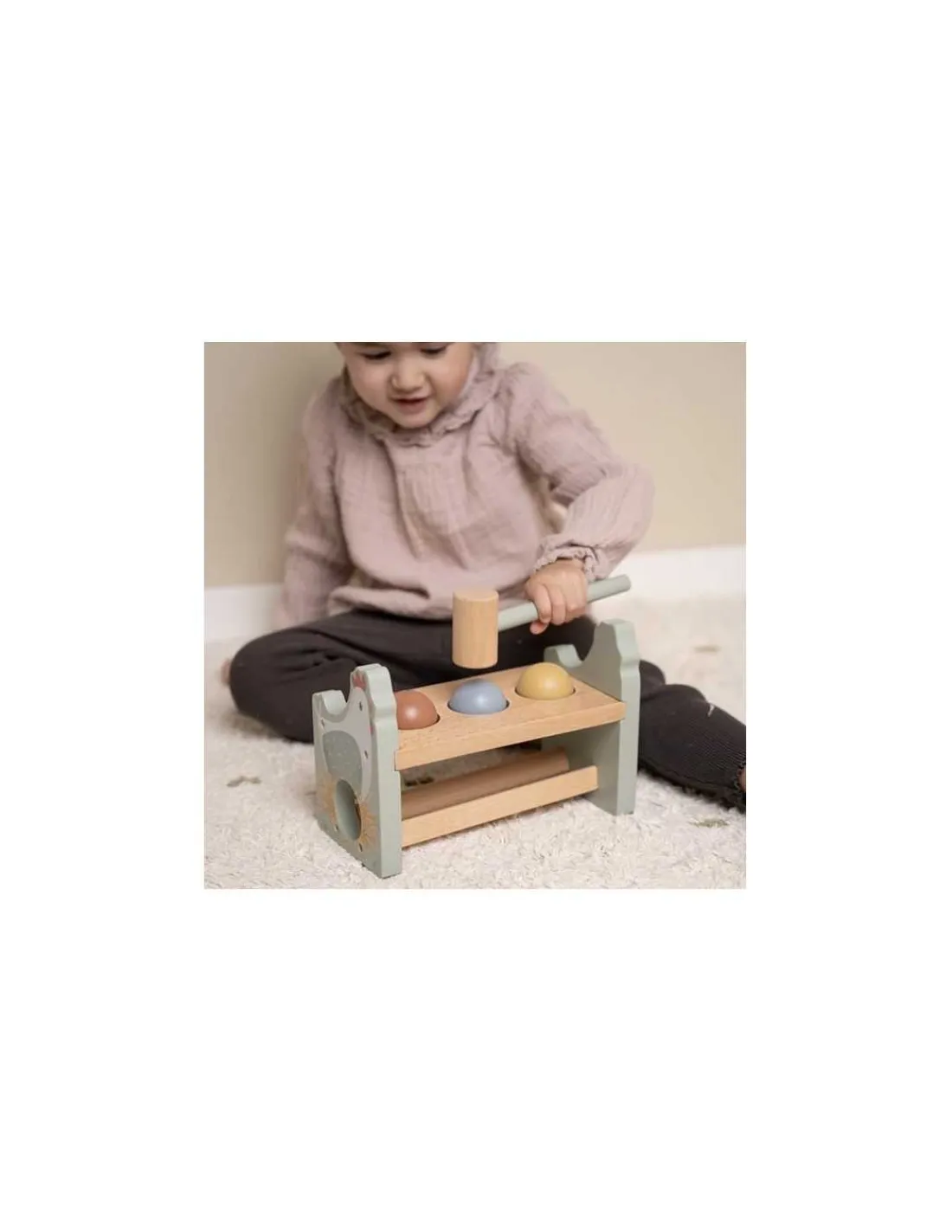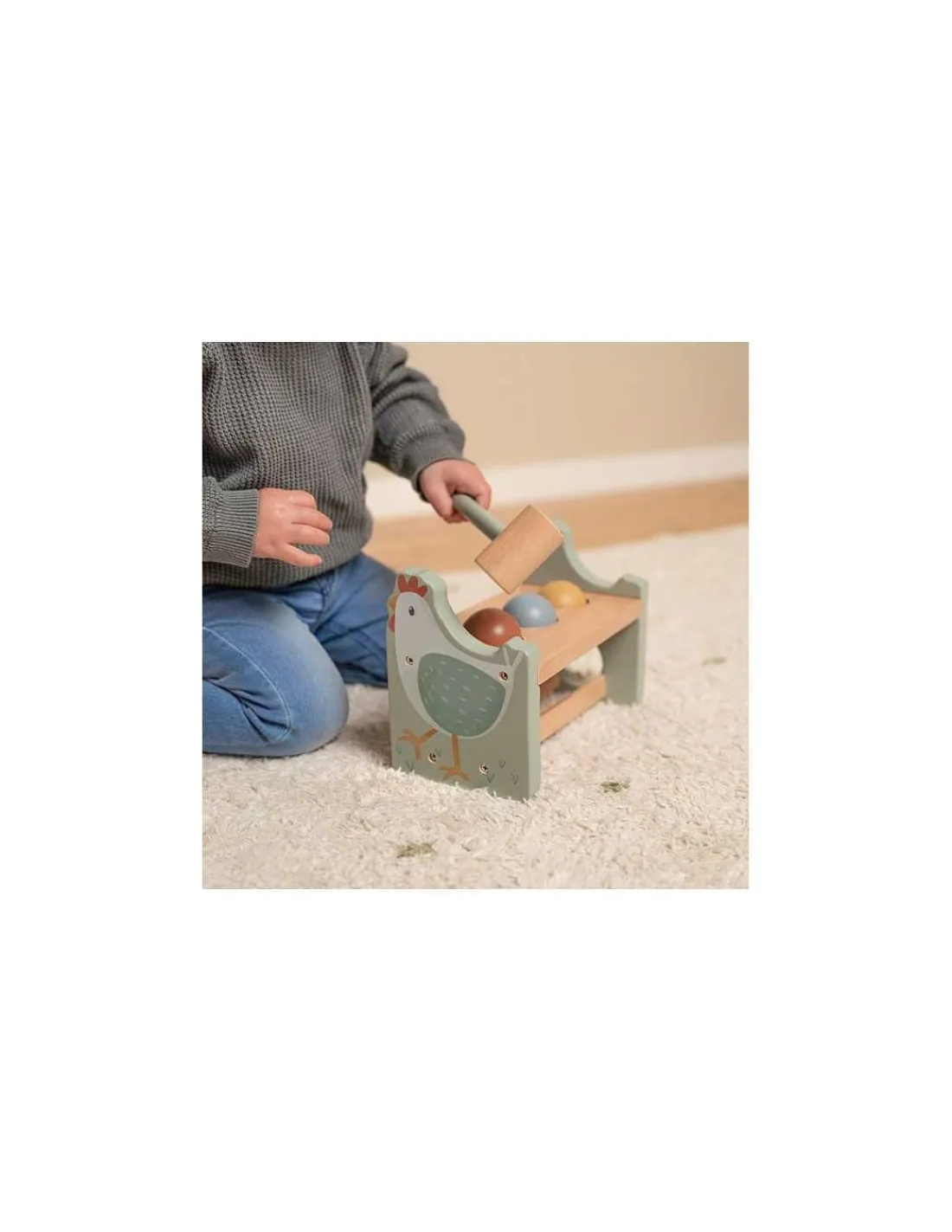 Tik, tik, tik ! Aidez cette adorable poule à pondre en frappant les trois balles avec le marteau en bois. Une fois toutes les balles tombées, remettez-les en place et recommencez.