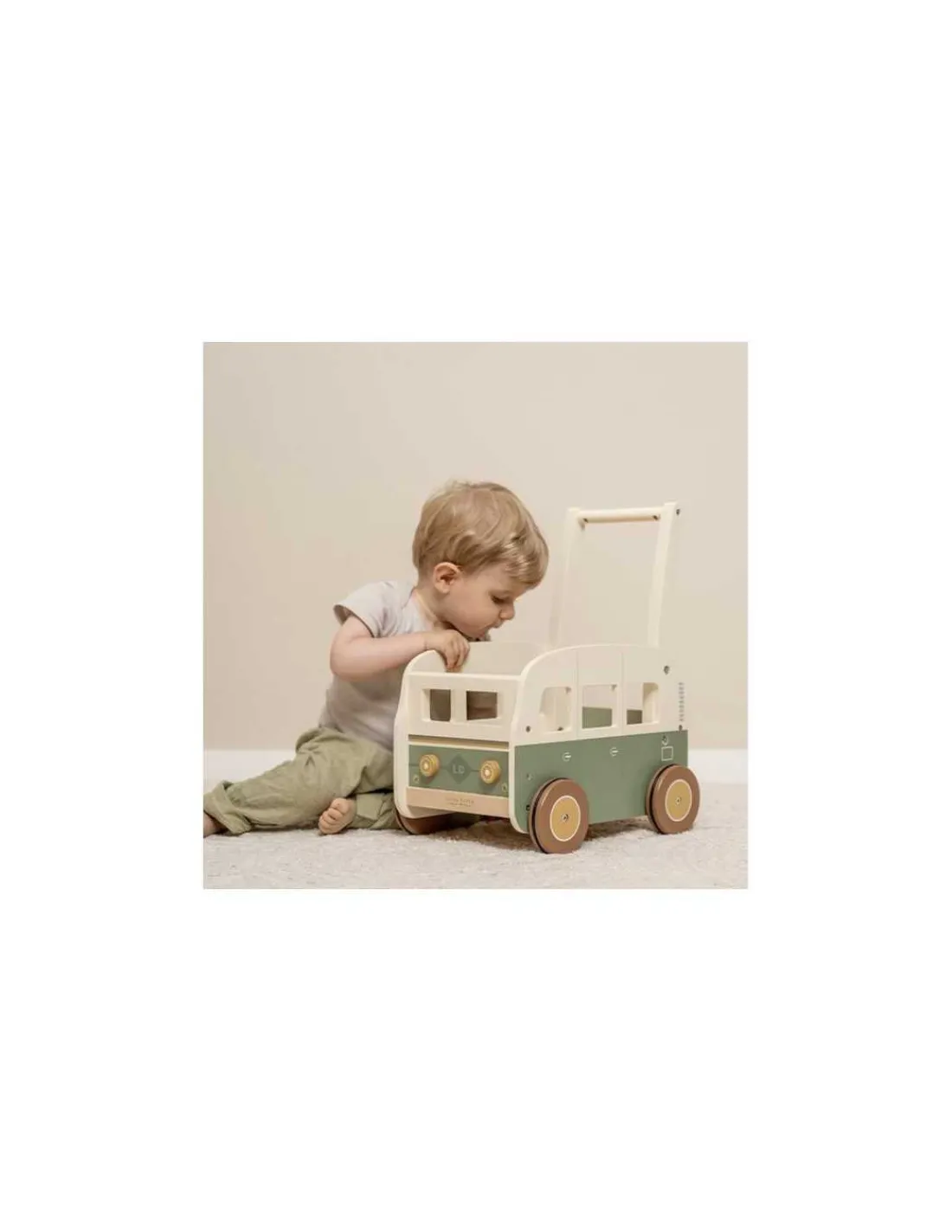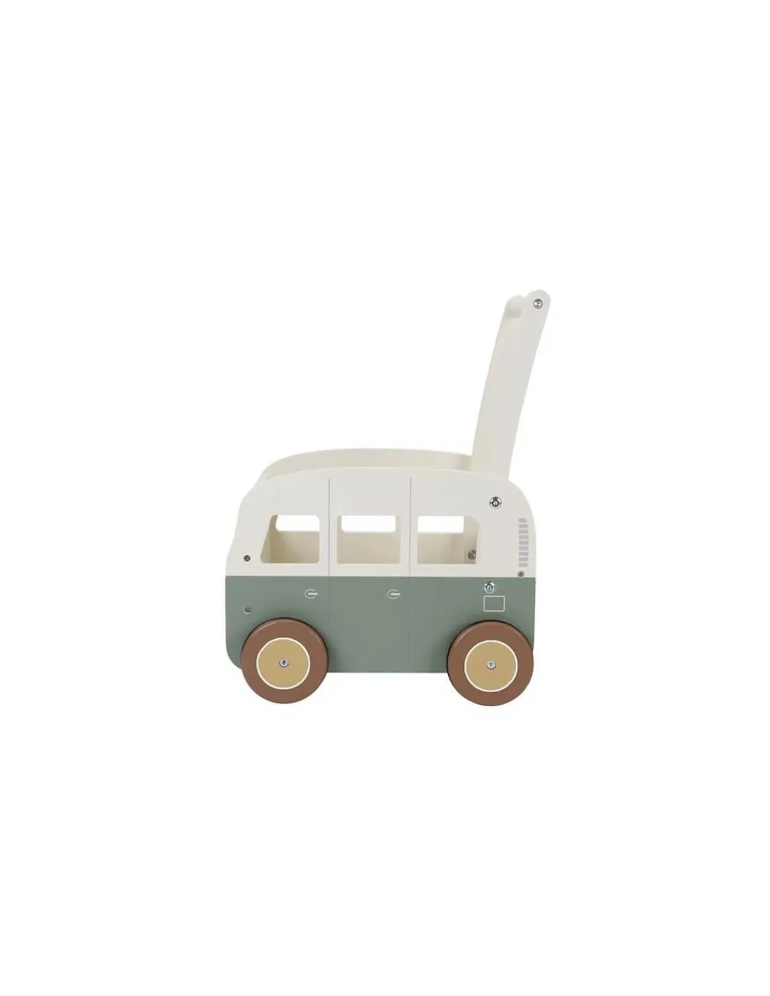 Les enfants vont apprendre à marcher et à garder leur équilibre tandis que les parents remonteront le temps et seront pris de nostalgie. Un fourgon tout rond avec des roues silencieuses et dans lequel votre enfant pourra déposer ses jouets et ses doudous pour les promener dans toute la maison.