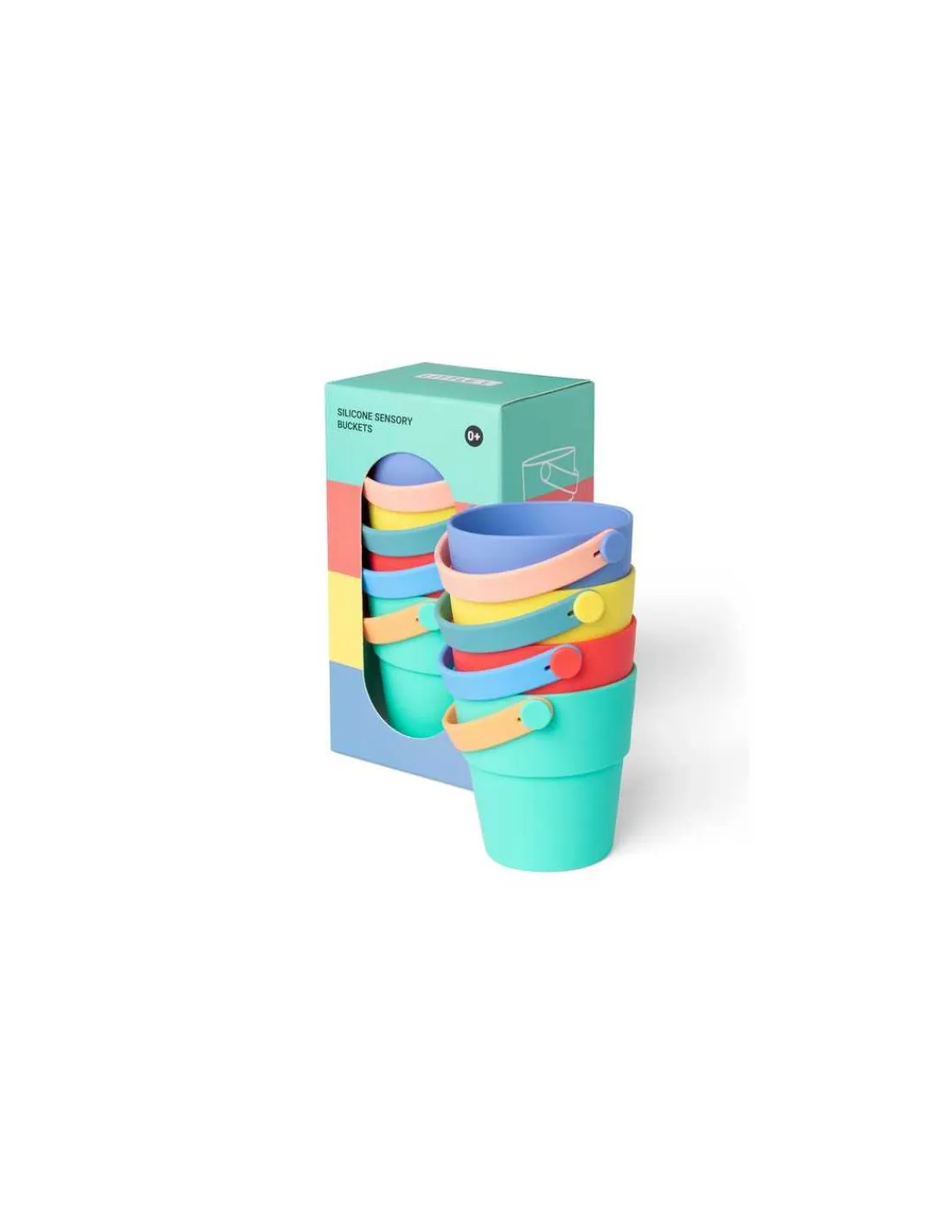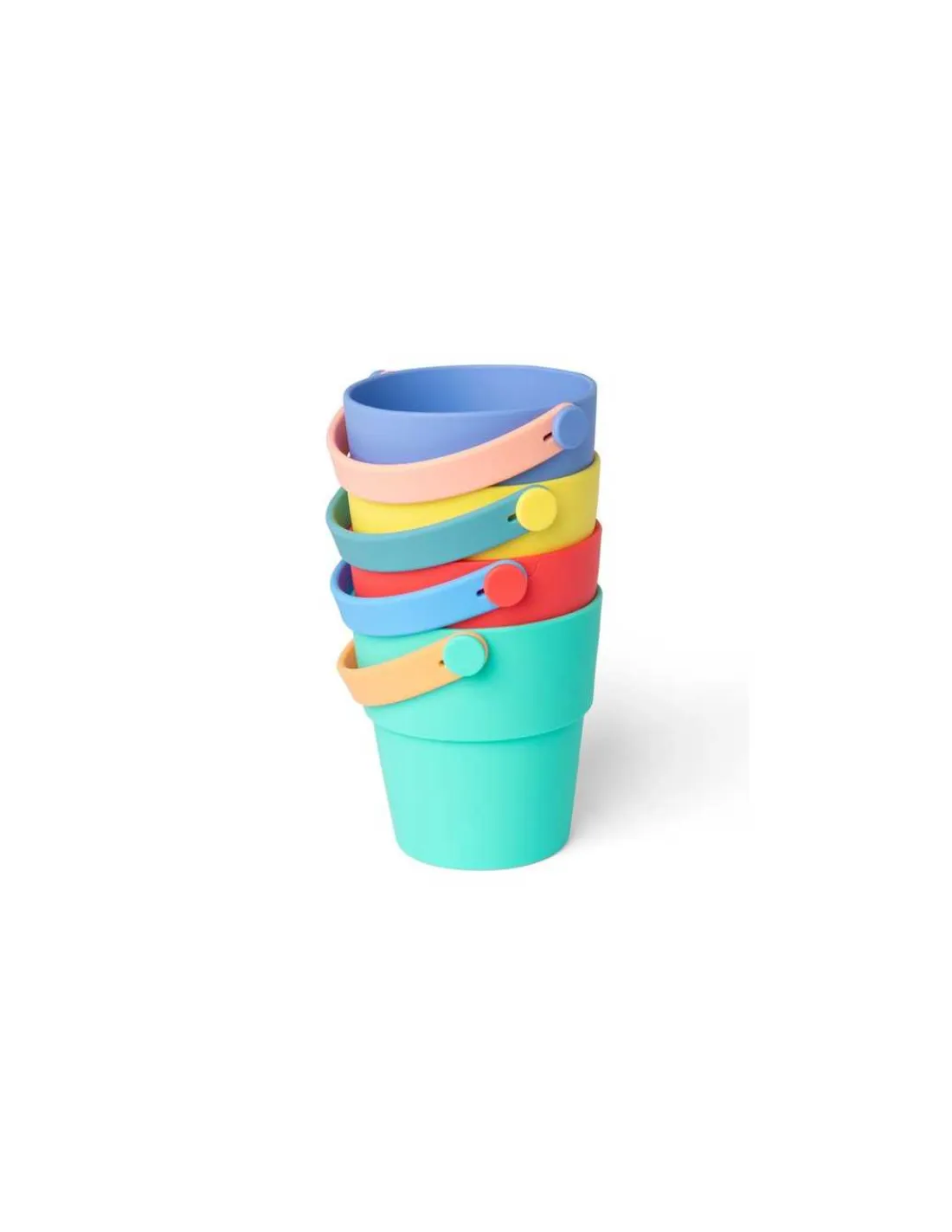 Un jouet d’éveil qui trouvera aussi bien sa place dans la salle de bain que dans votre sac de plage pour jouer au bord de la mer. 4 seaux en silicone empilables de différentes couleurs pour jouer dans le sable ou dans l’eau.