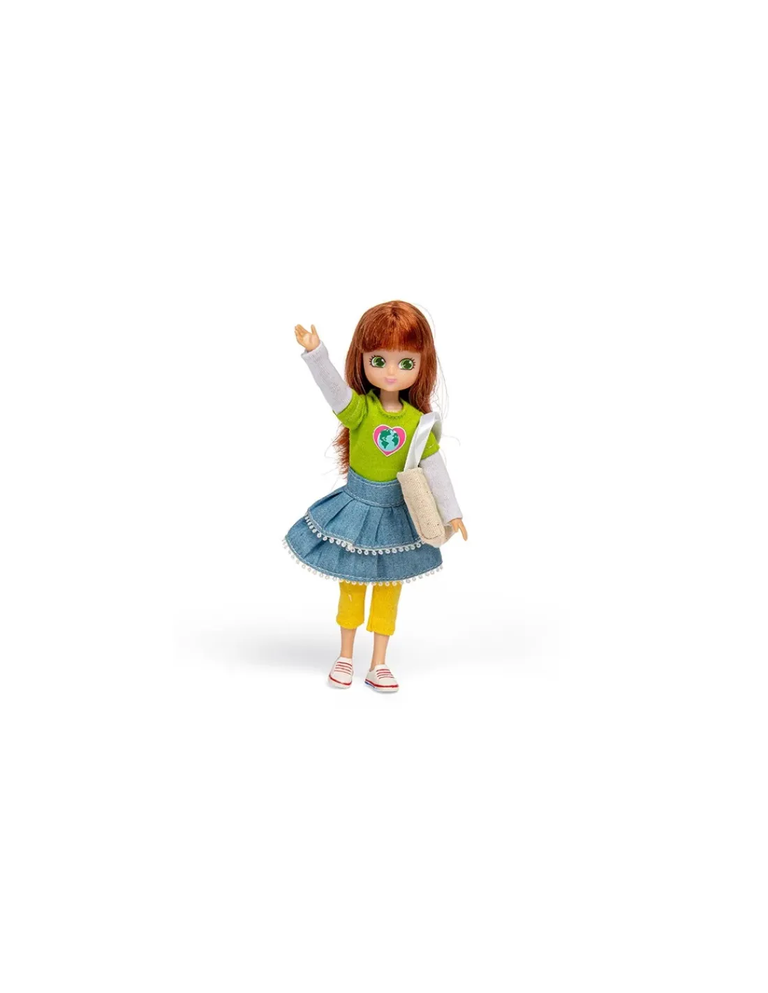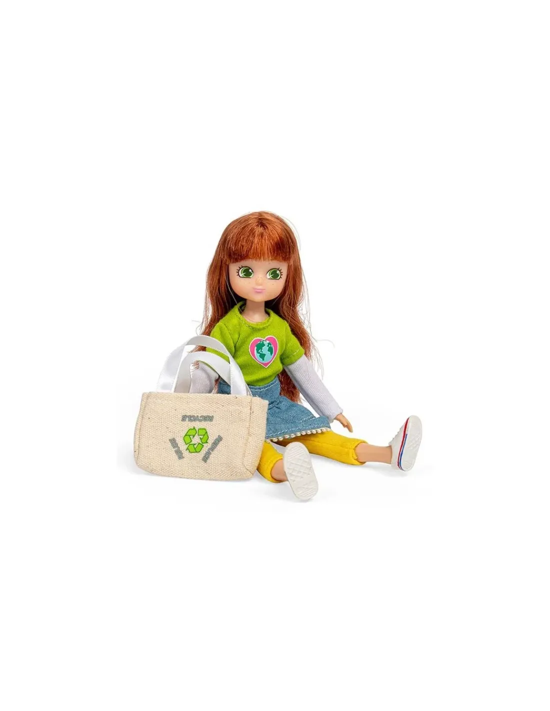 Une adorable poupée aux longs cheveux roux et aux grands yeux verts qui a pour ambition de sauver la planète. Lottie est vêtu d’un teeshirt à manches longues avec une planète dans un coeur, un legging, une jupe, une paire de baskets, un sac cabas et un guide sur le recyclage.