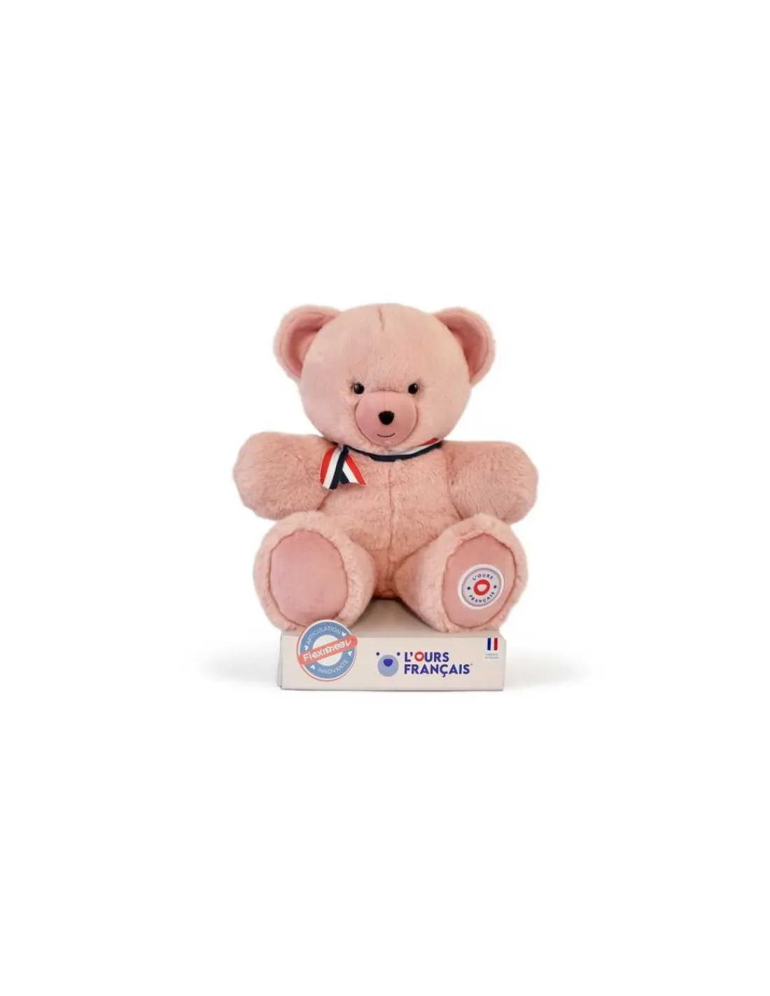 Découvrez la Peluche L’ours français 35 cm Rose pastel, une adorable peluche fabriquée en France à offrir à bébé dès la naissance. Un ours articulé traditionnel, subtilement habillé d’un ruban bleu blanc rouge pour honorer le savoir-fabriquer français.