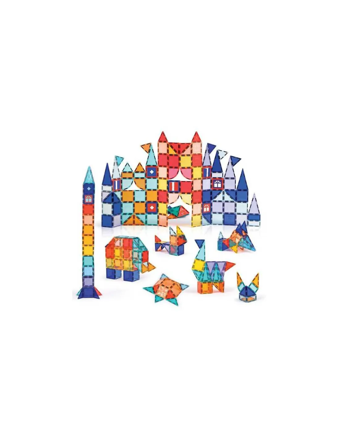 Un jeu de construction aimanté créatif et éducatif. Cette valisette pratique réunit 100 pièces magnétiques colorées et transparentes (carrés, triangles, rectangles, fenêtres, quarts de cercle) pour imaginer des constructions en 2D et en 3D.