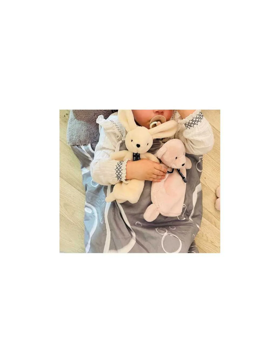 Découvrez le doudou ivoire lapin de la collection « Dorlotin » de Maïlou Tradition, un adorable doudou plat fabriqué en France à offrir à bébé dès la naissance.