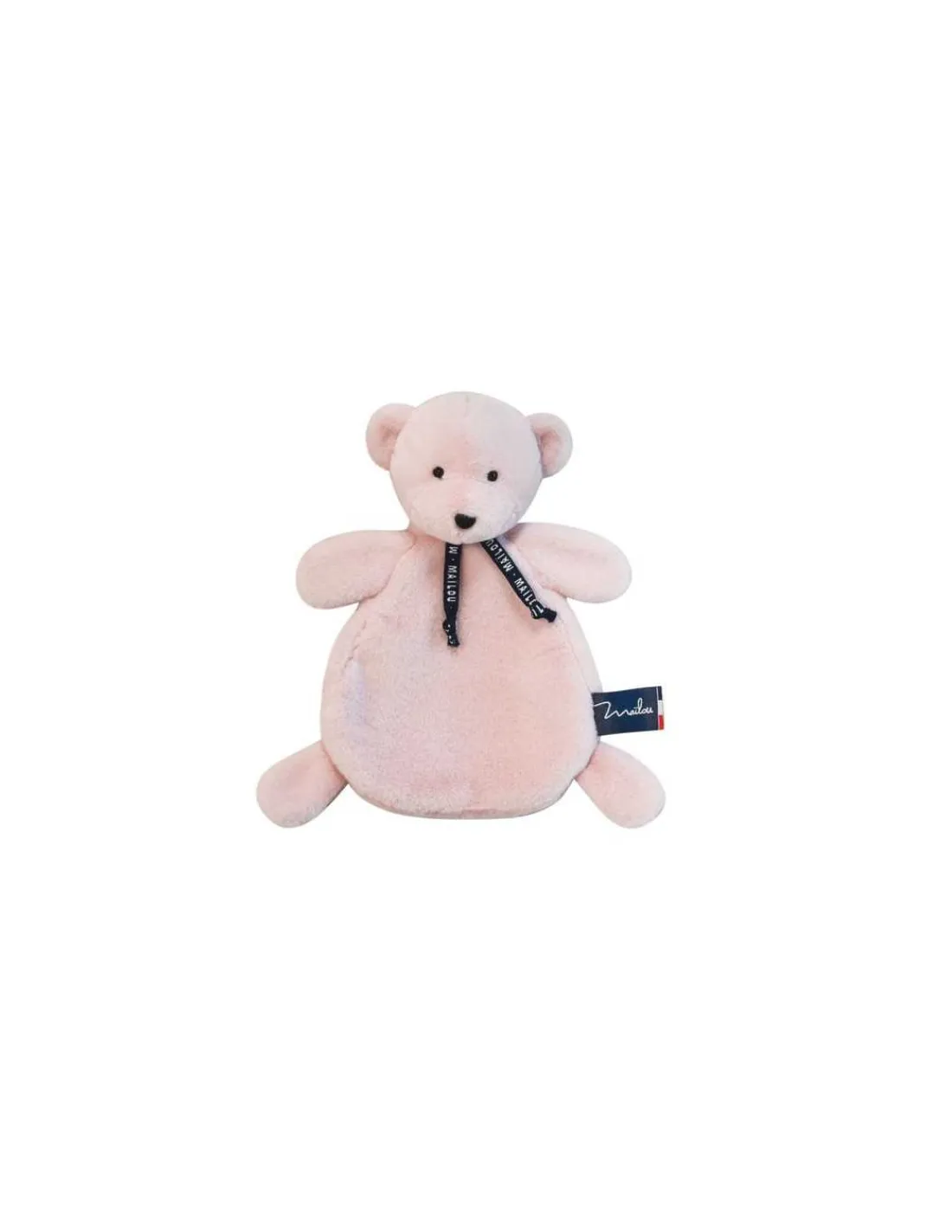 Découvrez le doudou rose poudré ours de la collection « Dorlotin » de Maïlou Tradition, un adorable doudou plat fabriqué en France à offrir à bébé dès la naissance.