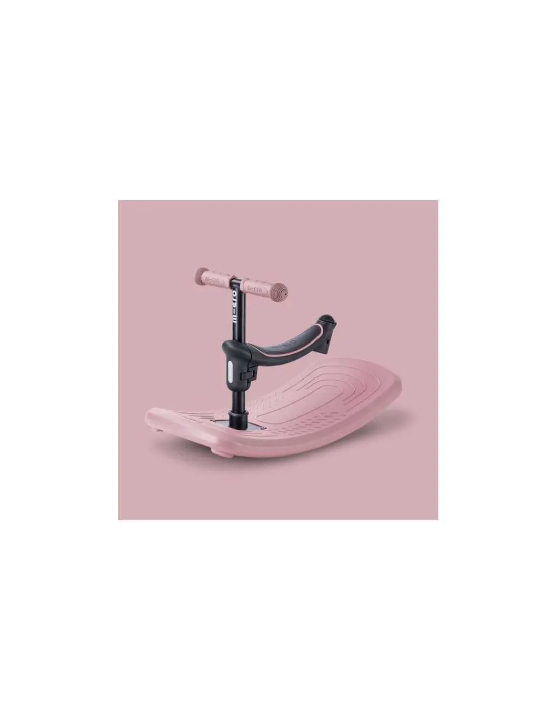 Découvrez la trottinette Mini Micro Deluxe Rock & Go Rose Poudré LED de Micro Mobility, la première trottinette qui balance, roule… et évolue avec votre enfant de 1 à 6 ans.