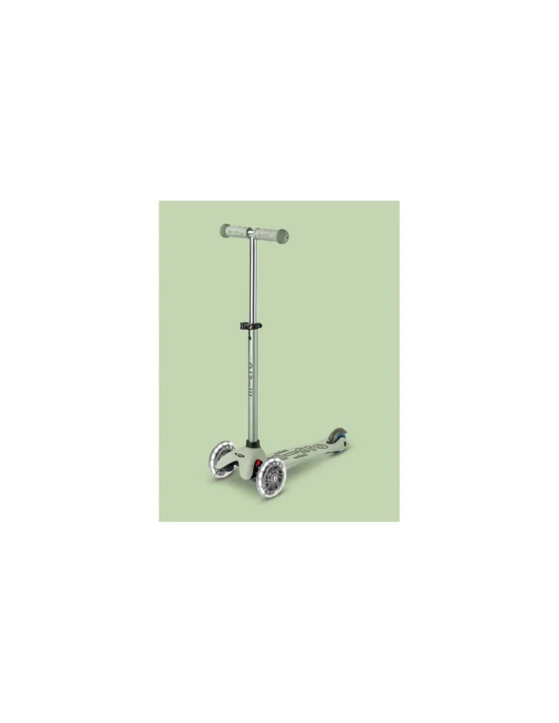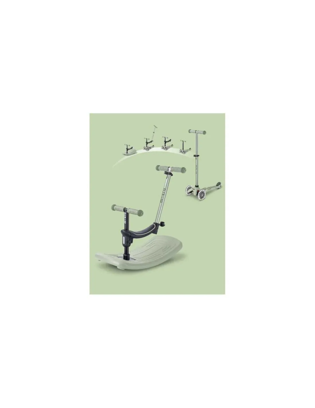 Découvrez la trottinette Mini Micro Deluxe Rock & Go vert sauge LED de Micro Mobility, la première trottinette qui balance, roule… et évolue avec votre enfant de 1 à 6 ans.