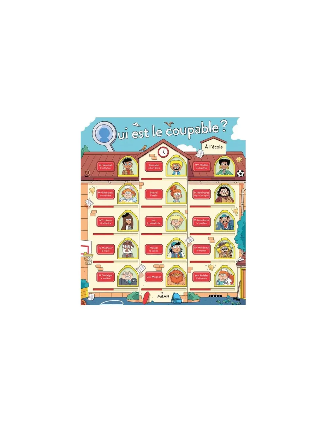 Découvrez Le livre Qui est le coupable à l’école? des éditions Milan, un livre jeu de 40 pages pour les enfants à partir de 7 ans. Dans une école complètement loufoque, le lecteur mène l’enquête et élimine lui-même les suspects pour trouver qui est le coupable.