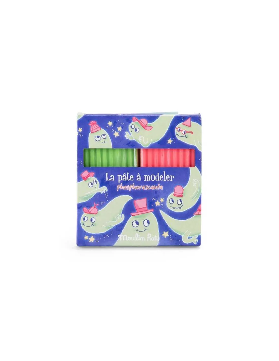 Découvrez les 2 pâtes à modeler phosphorescentes de la collection Les petites merveilles de Moulin Roty, un coffret de pâte à modeler pour les enfants à partir de 2 ans.