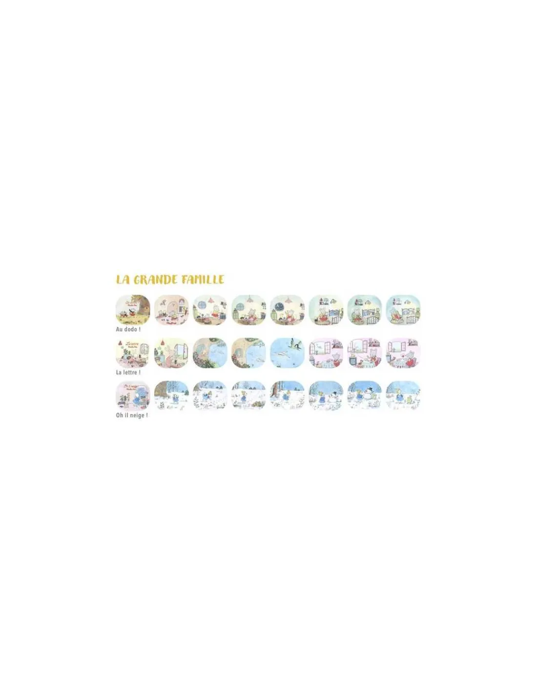 Découvrez la boite de 3 disques pour lampe à histoires de la collection La grande famille de Moulin Roty, 3 histoires à insérer dans n’importe quelle lampe à histoire pour projeter 3 histoires racontant les aventures des personnages de la grande famille.