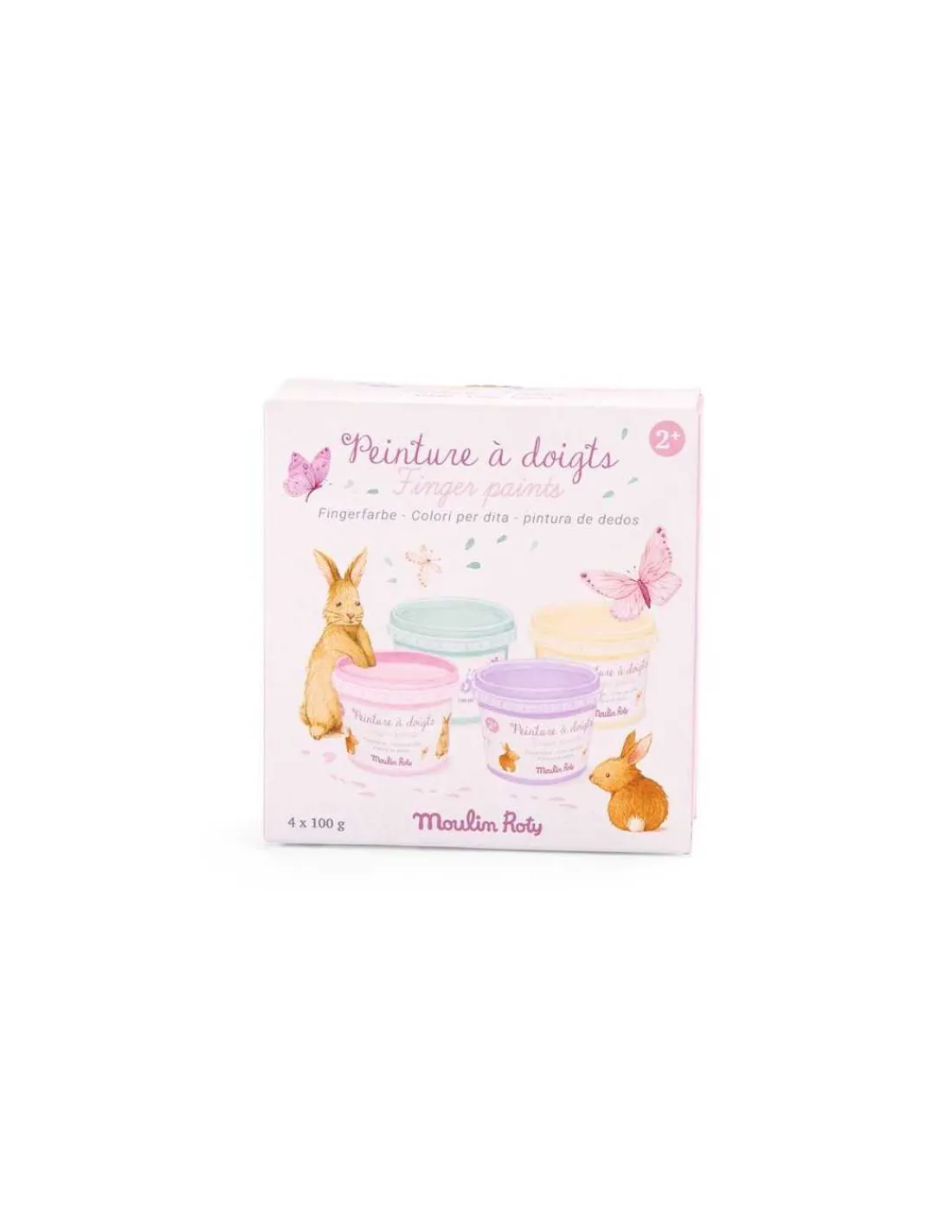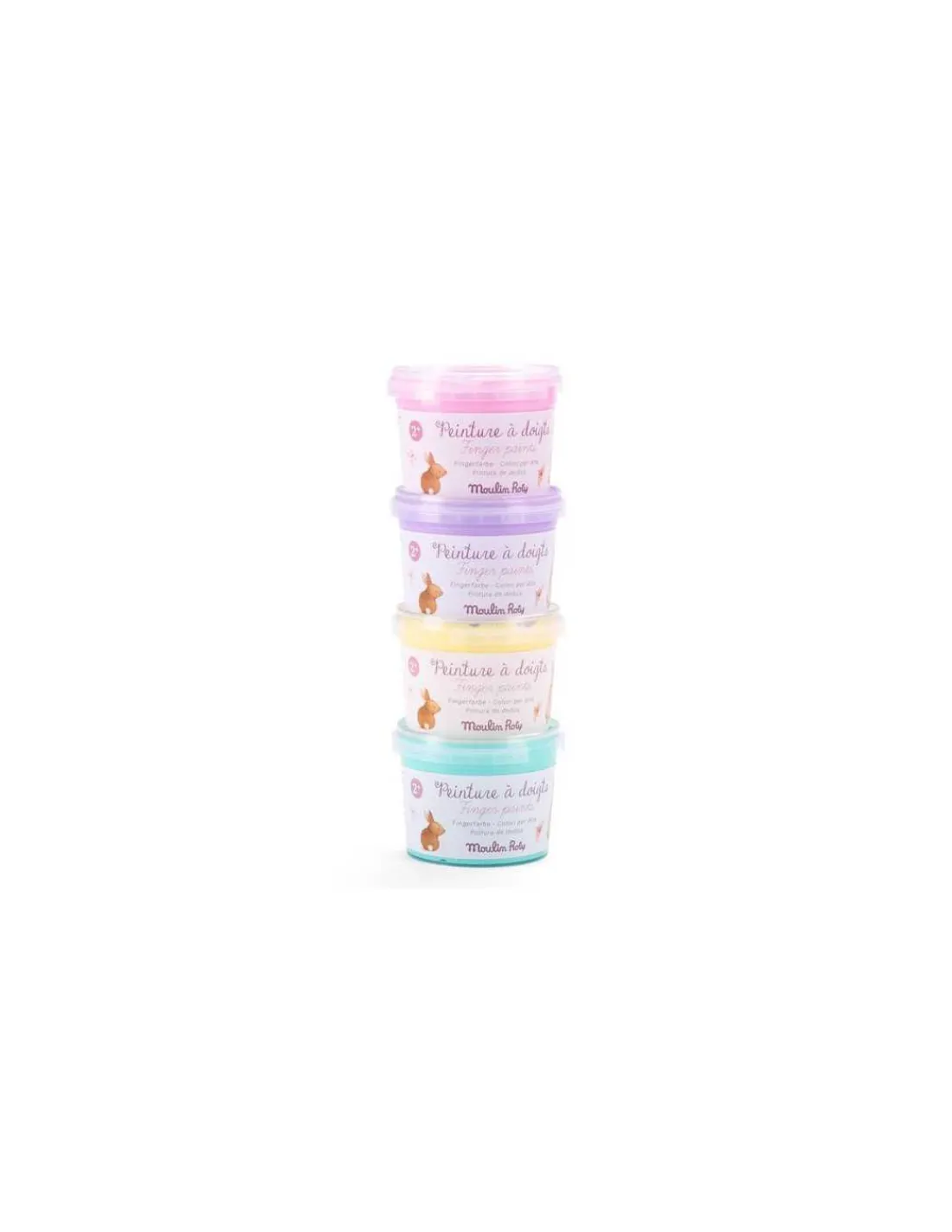 Découvrez les 4 pots de peinture à doigts pastel de la collection Les Rosalies de Moulin Roty, 4 pots de peinture à doigts pastel pour laisser libre court à la créativité des petits à partir de 2 ans!