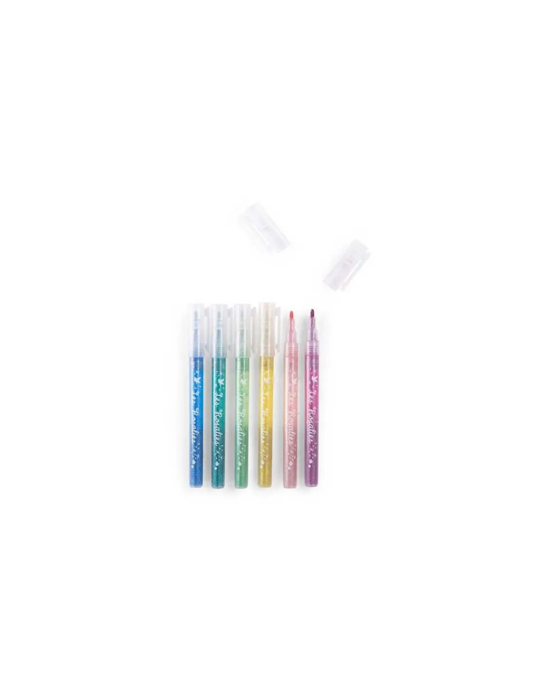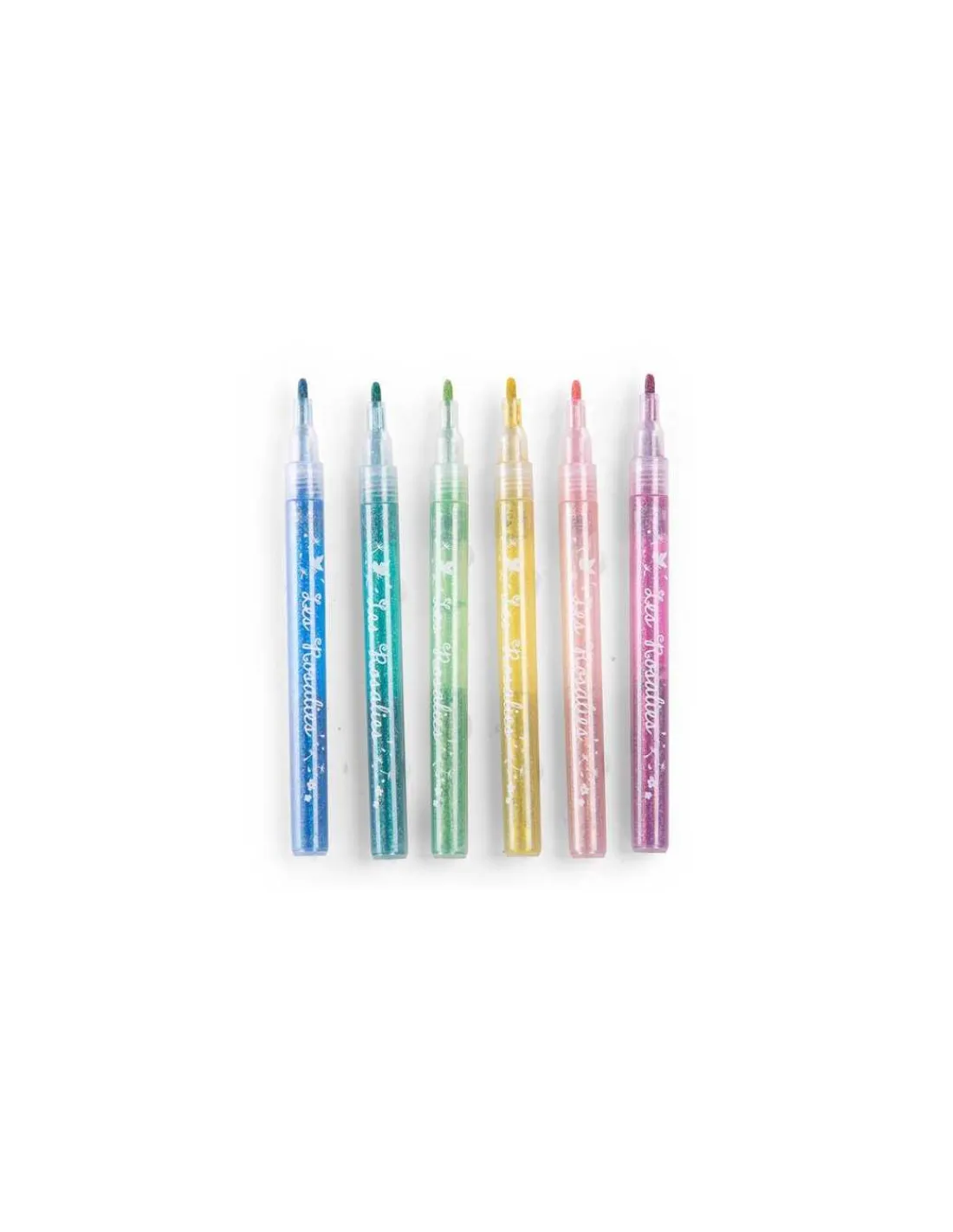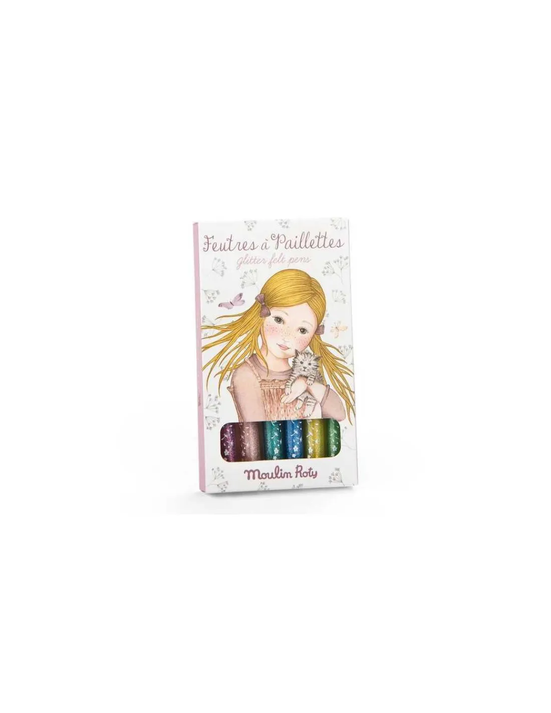 Découvrez les 6 feutres à paillettes de la collection Les Rosalies de Moulin Roty, 6 crayons pailletés pour faire scintiller vos dessins, coloriages et toutes vos créations.