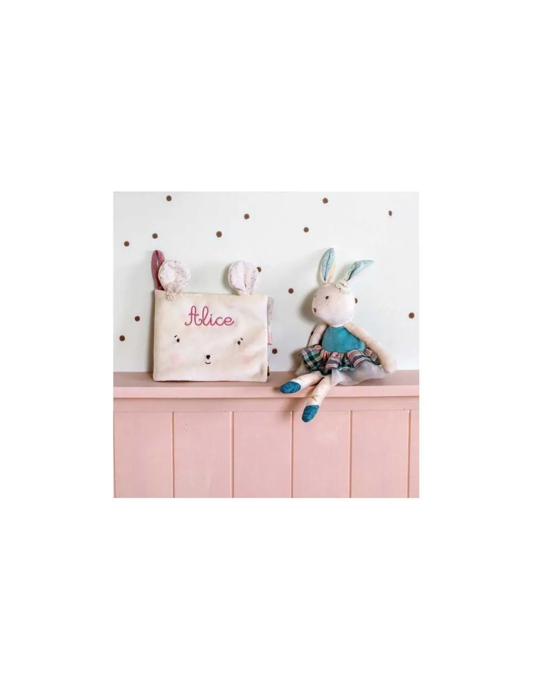 Découvrez l’album photo textile de la collection La petite école de danse de Moulin Roty, un album photo tout doux à l’effigie de la souris danseuse de la collection, ses oreilles toutes douces sont en volume!